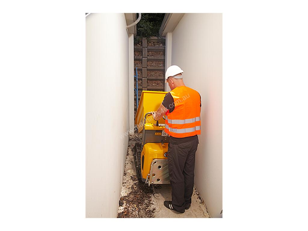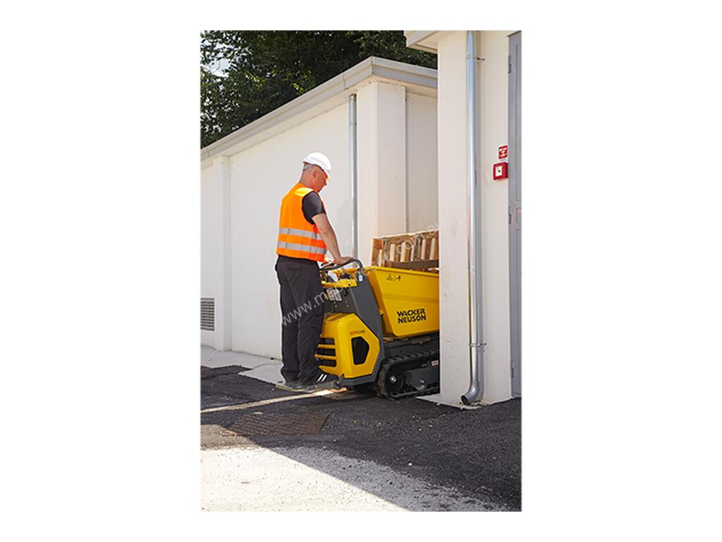 Wacker Neuson's track dumper DT05 can be manoeuvred on any surface with centimetre-accuracy, thanks to its compact dimensions and precision control. It really comes into its own where space is very tight and agility is a must. The hydrostatic drive enables easy and comfortable operation. Ultra-compact dimensions (66 cm), ideal for working in confined spaces and making its way through standard doors, high ground clearance. Optional high-tipping skip available.