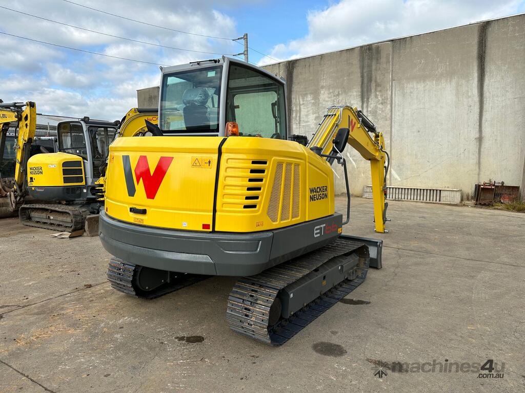 Brand New Wacker Neuson ET66 6.5t Excavator. Huge amounts of power, powered by a 3L Yanmar 4-Cylinder Diesel Engine. Power of an 8 tonner in the body of a 6.5tonner. Straight boom design for extreme working conditions such as demolition and rock work. This is a run out model and stock won't last long at this price, you won't find better value on a new 6.5 tonner in Australia.