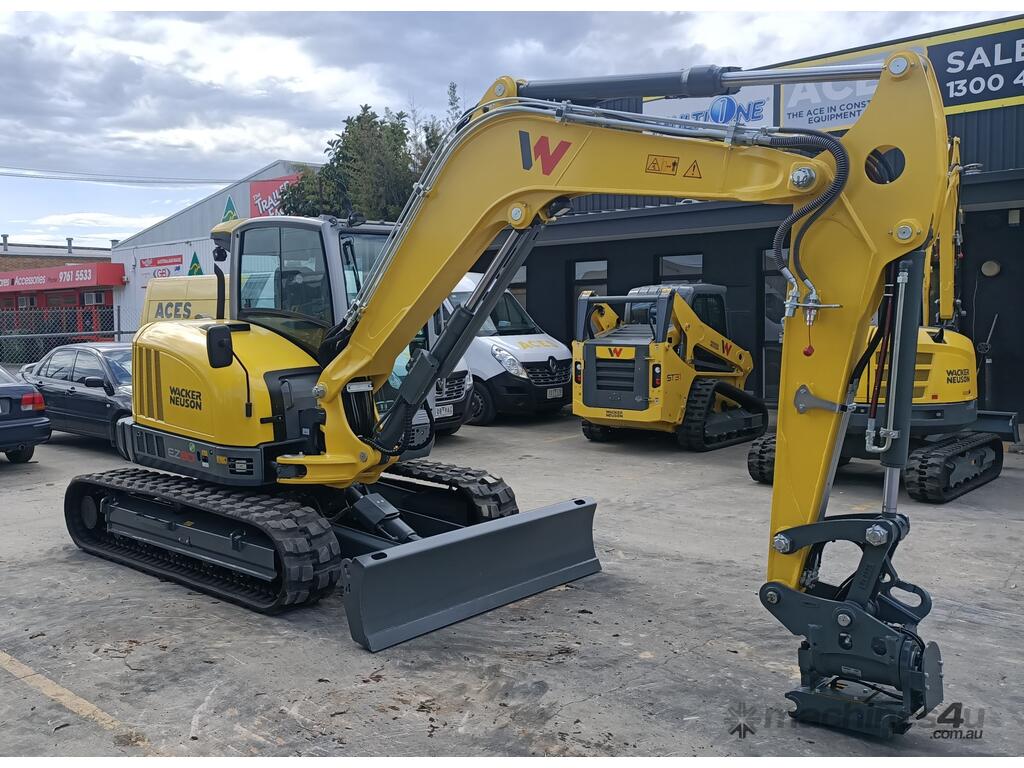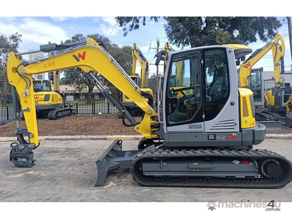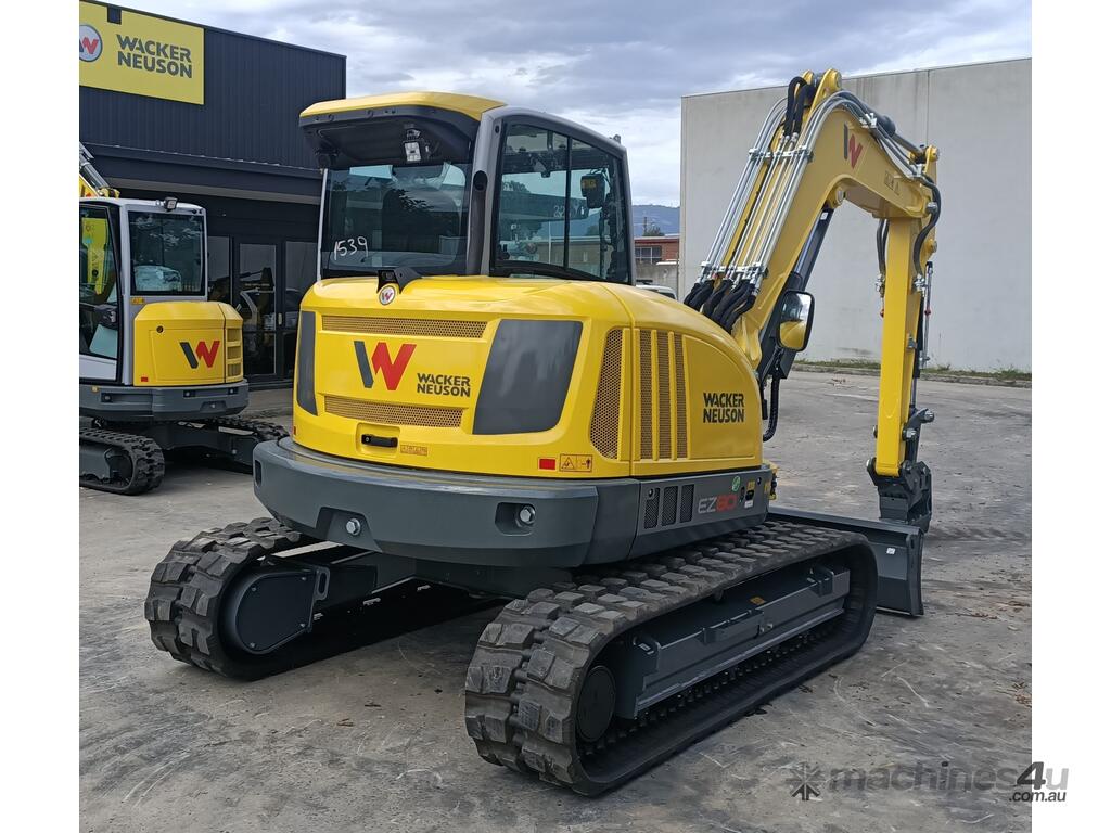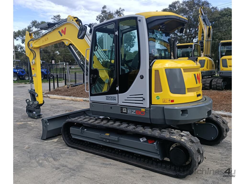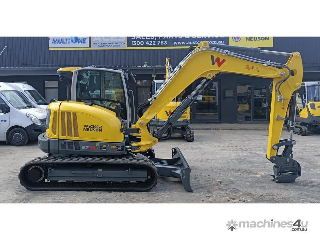The Wacker Neuson EZ80 is the largest zero swing excavator manufactured by Wacker Neuson. It features the latest technology available for compact excavators including fully climatic control air-conditioning, jog dial controlled LCD screen for machine functions and LUDV efficient hydraulic system. The EZ80 is the most powerful excavator in its class for both bucket and arm breakout forces.