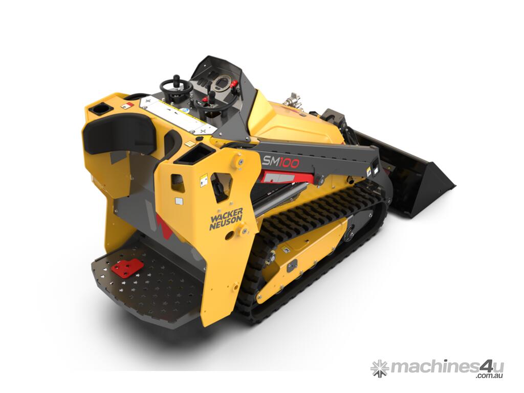 In addition to its compact design, the SM100 is comfortable for operators with ergonomic joysticks and reference handles, plush padding, and wide spring-suspension platform for added stability. The strong lift capacity and high hinge pin of the SM100 height allows for easy loading into high sided trucks and dumpsters. The heavy duty undercarriage construction and fast travel speeds means you can do more with less.