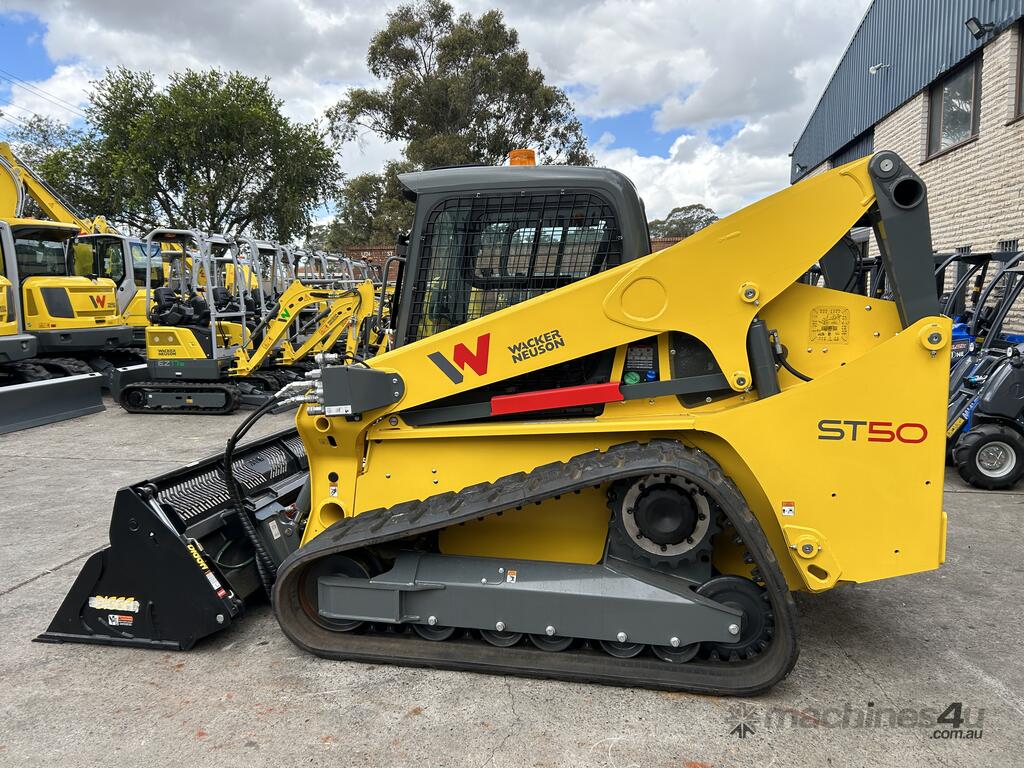 The Wacker Neuson ST50 offers maximum power and efficiency to the worksite. Featuring unrivalled traction, power and lift capacity with 1,588kg ROC at 35%. Standard 2-speed travel and selectable EH joystick control make ST50 the operator's choice. Wide door with a low entrance and a very spacious cab keeps operator comfort and safety front of mind. Additionally, all Wacker Neuson new series skid steer loaders have been designed with serviceability and maintenance as a key priority, the cab can be tilted with both the arm in raised and lowered position.