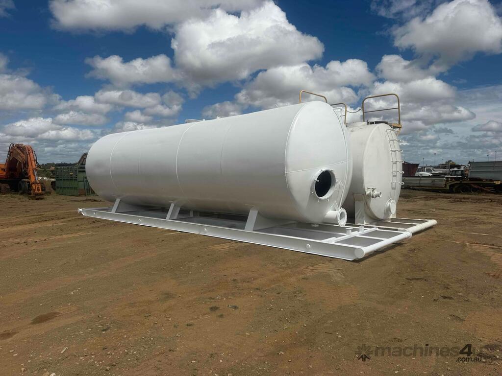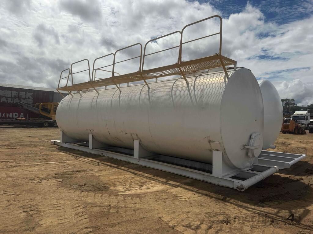 Toowoomba Plant and Equipment has a Used RHEEM 60,000-liter steel fuel/water cartage tank available, expertly refurbished and newly painted to ensure optimal performance and longevity. The tank is mounted on a skid, providing enhanced stability and ease of transport.