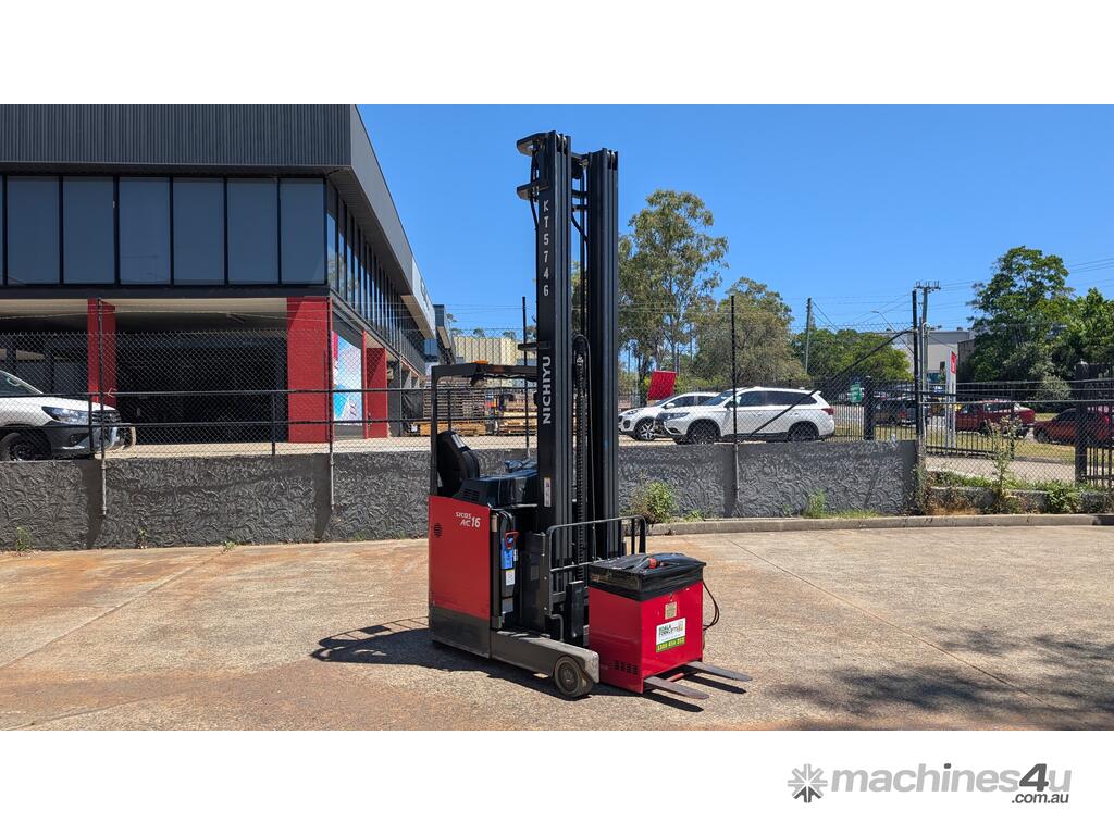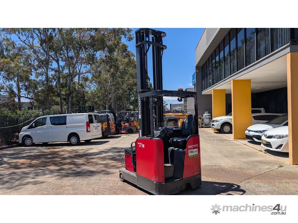For Sale: 2022 Nichiyu FBRF16-75 Electric Reach Forklift – a premium high-reach electric forklift built for precision, control, and vertical performance. This 1.6-ton reach truck is equipped with a massive 9.0m lift height, camera and monitor system, and side shift, making it ideal for high bay warehousing and narrow aisle operations.