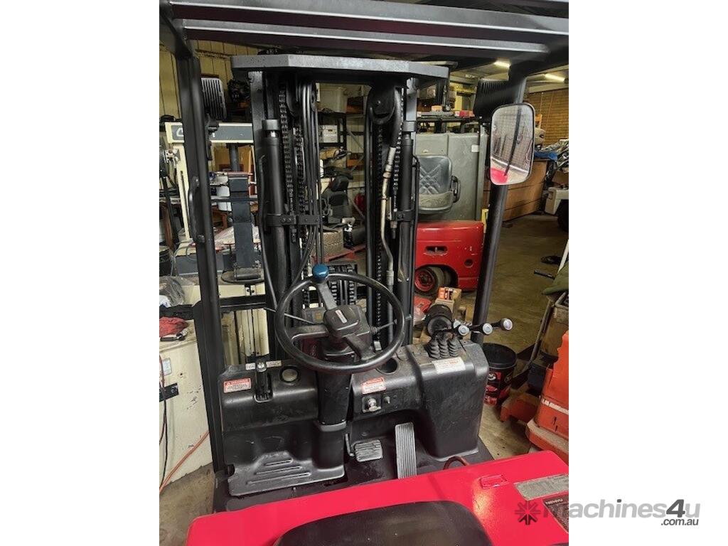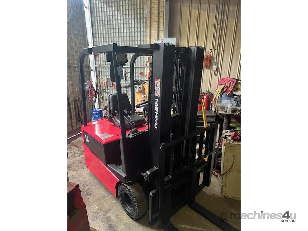 It's a Nichiyu FBT13PN Sit Down 3 Wheel Battery Electric Counterbalanced forklift with;