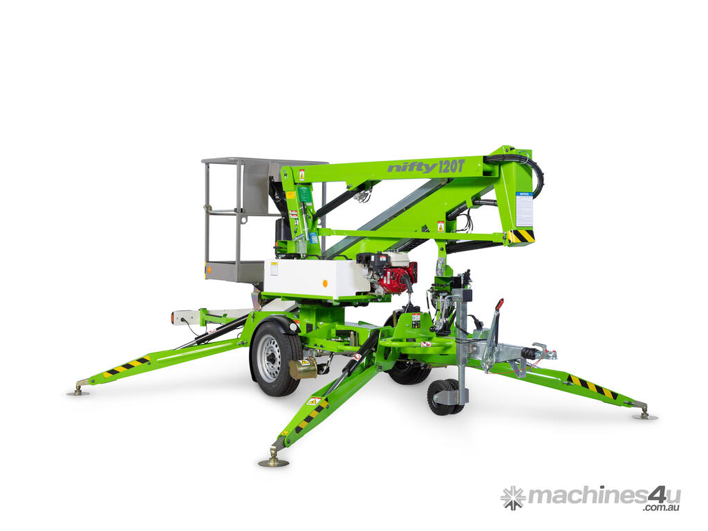 It delivers unrivalled versatility and work-site performance. Expertly designed to make short work of lower levels, the Nifty 120T boasts a highly compact chassis and traction drive option for safe positioning.