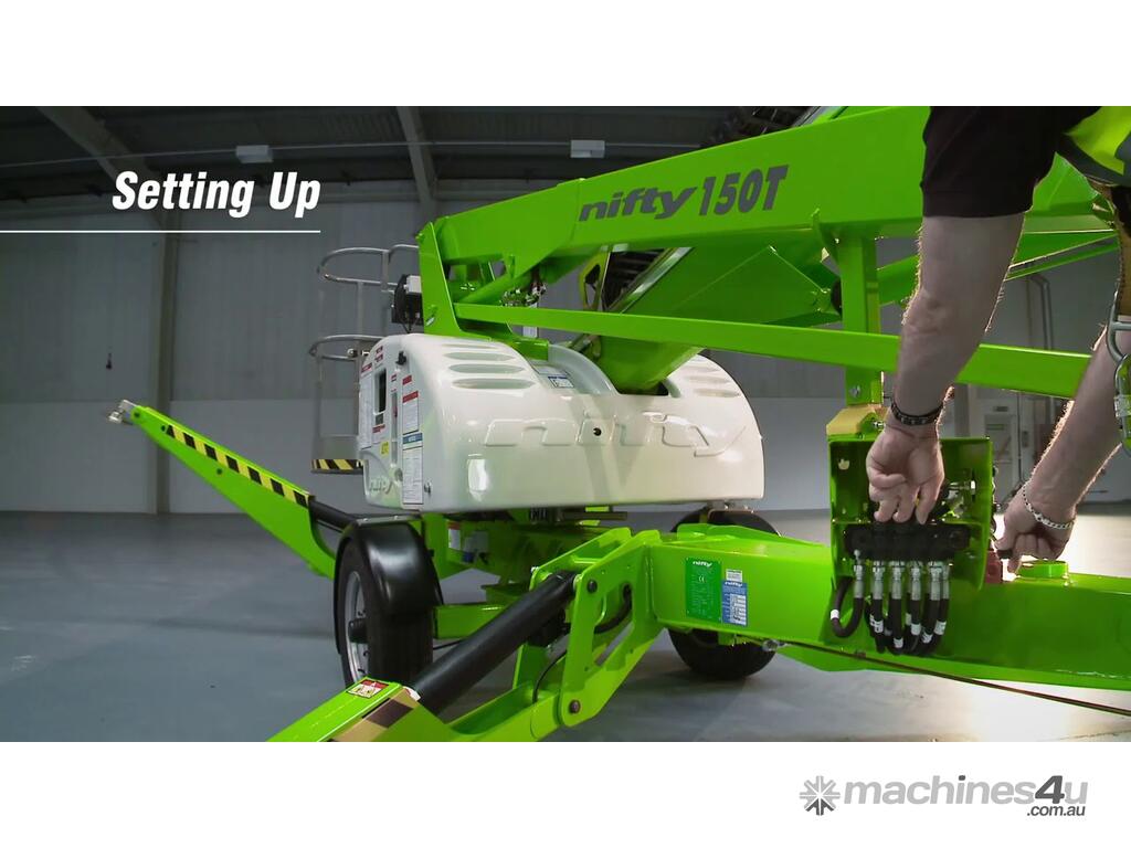 Fully proportional hydraulic controls and a spacious platform make the Nifty 150T trailer mount simple to operate with both speed and accuracy.