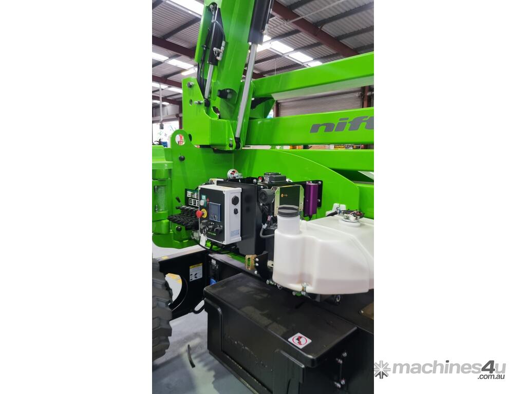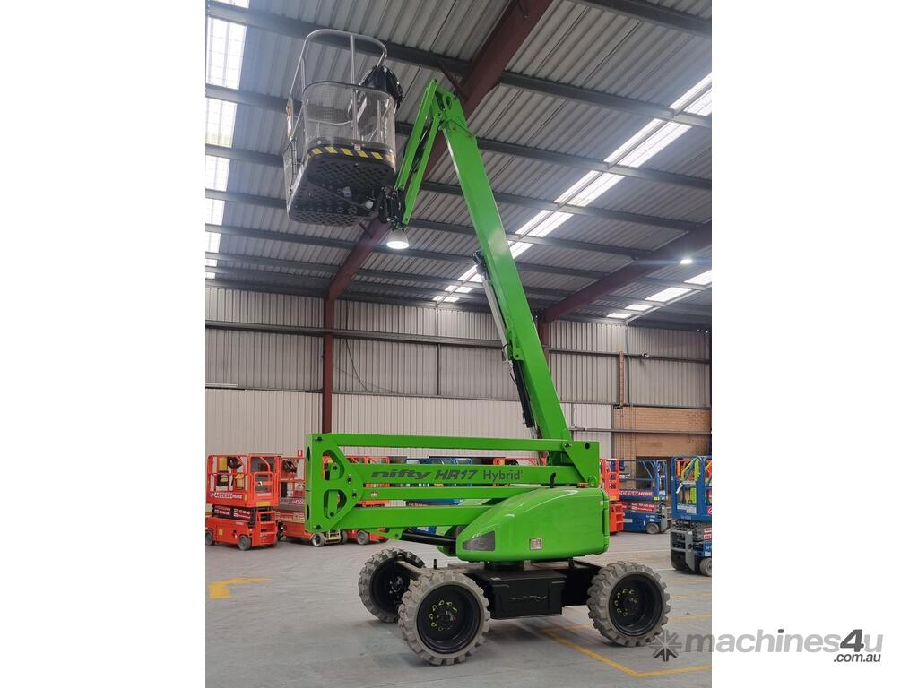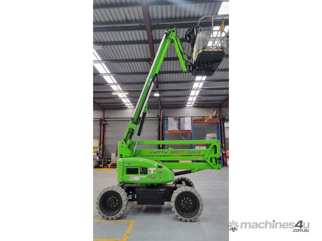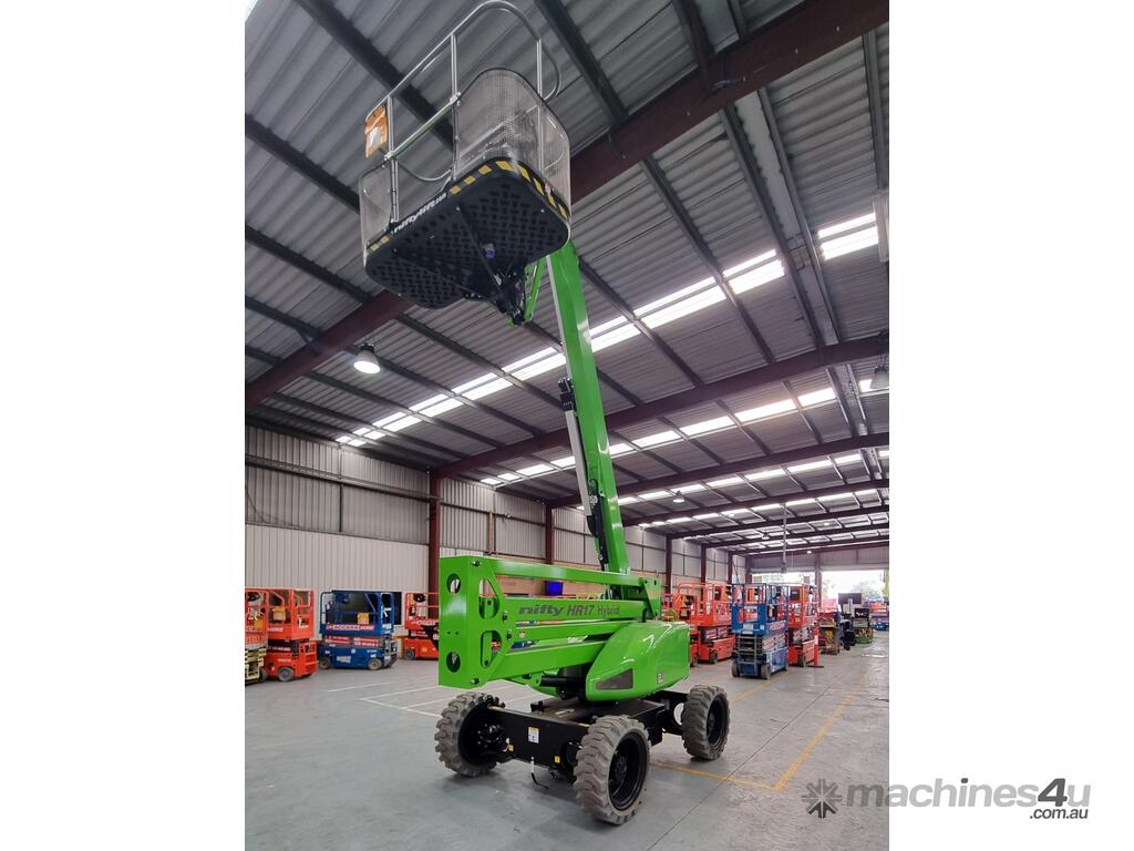 The Niftylift HR17 4x4 Hybrid is a versatile articulating boom lift designed for both indoor and outdoor applications. With hybrid power, it offers quiet, emissions-free electric operation indoors and powerful diesel performance outdoors. Four-wheel drive and strong gradeability provide confident traction on rough terrain, while the compact design and articulating boom allow easy access to hard-to-reach areas.