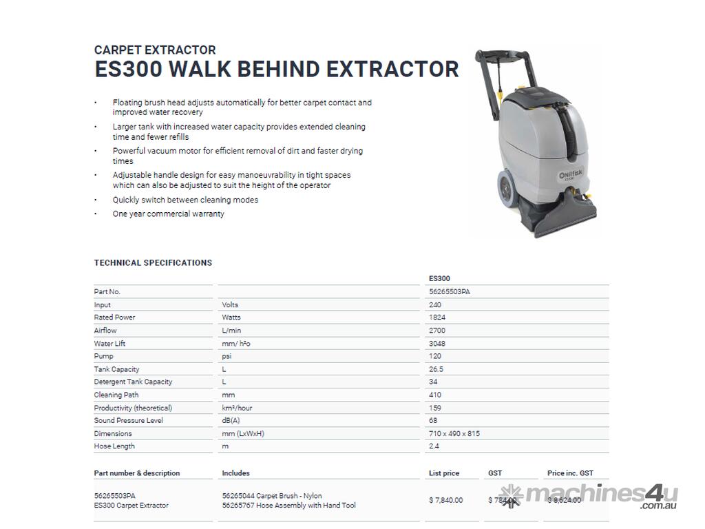 With the ES300 Nilfisk has entered a new era of carpet cleaning. This machine is ideal for cleaning your high and light traffic carpeted areas and not only remove dirt and water, but the machine also meets the highest standards to extend the life or your carpets. Besides its great productivity and cleaning performance ES300 is easy to operate.