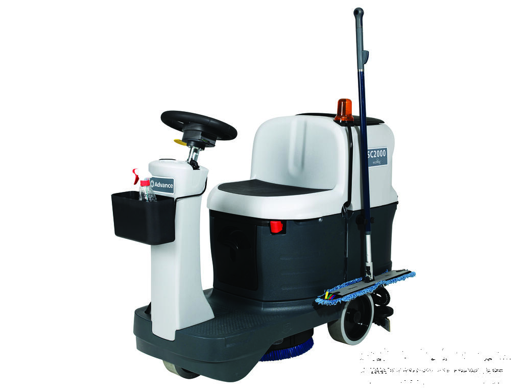 The Nilfisk SC2000 mini ride-on scrubber dryer eases the working effort significantly compared a walk-behind machine. An attractive choice for cleaning of offices, supermarkets, sports centers, shops, restaurants, hotels, and institutions like hospitals and schools.