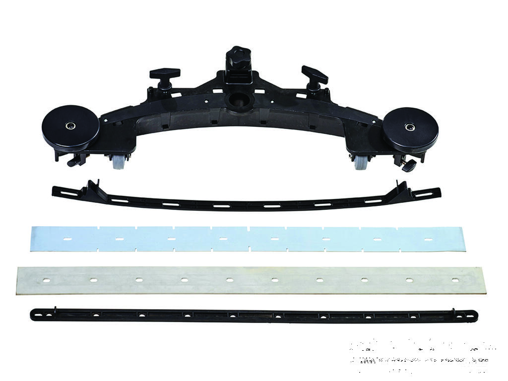 Easy handling: Automatic brush click on/off and plastic light squeegee with patent elastic strap system.