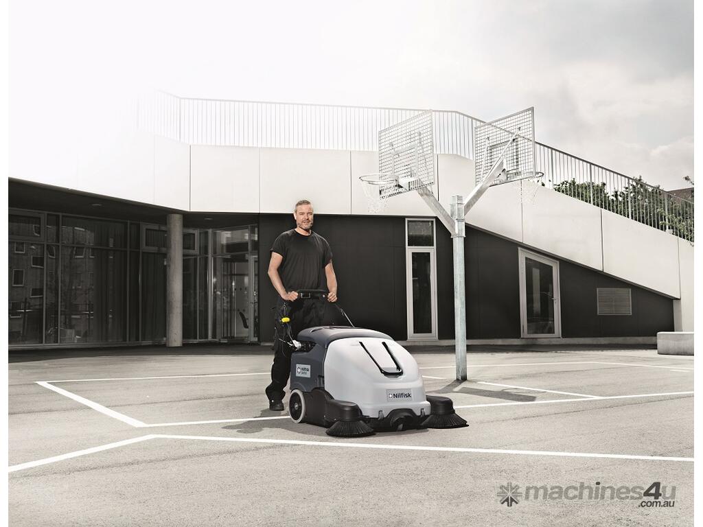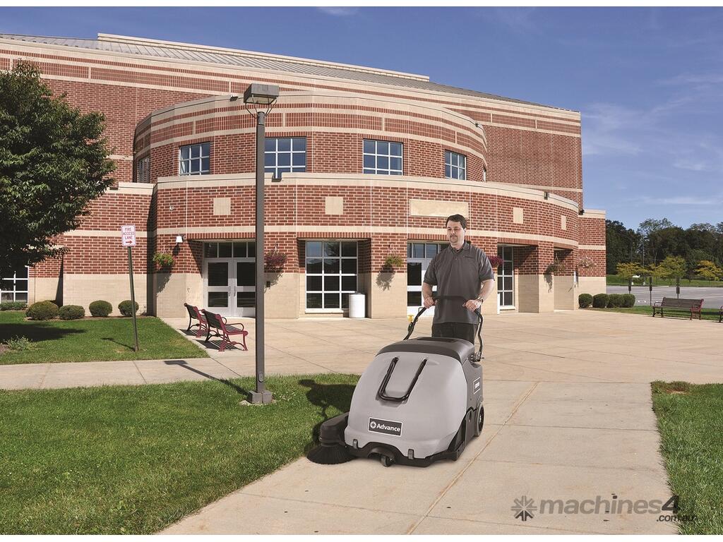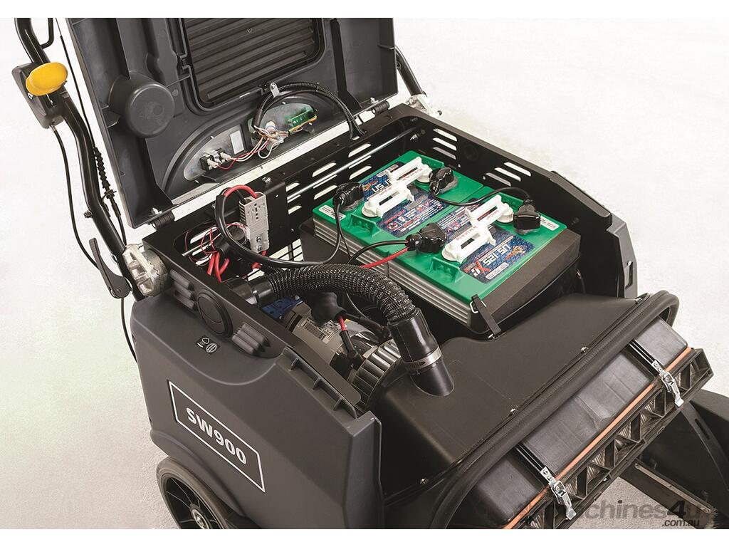 SW900 walk-behind sweeper for both indoor and outdoor use offers dust free removal of dry debris.