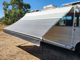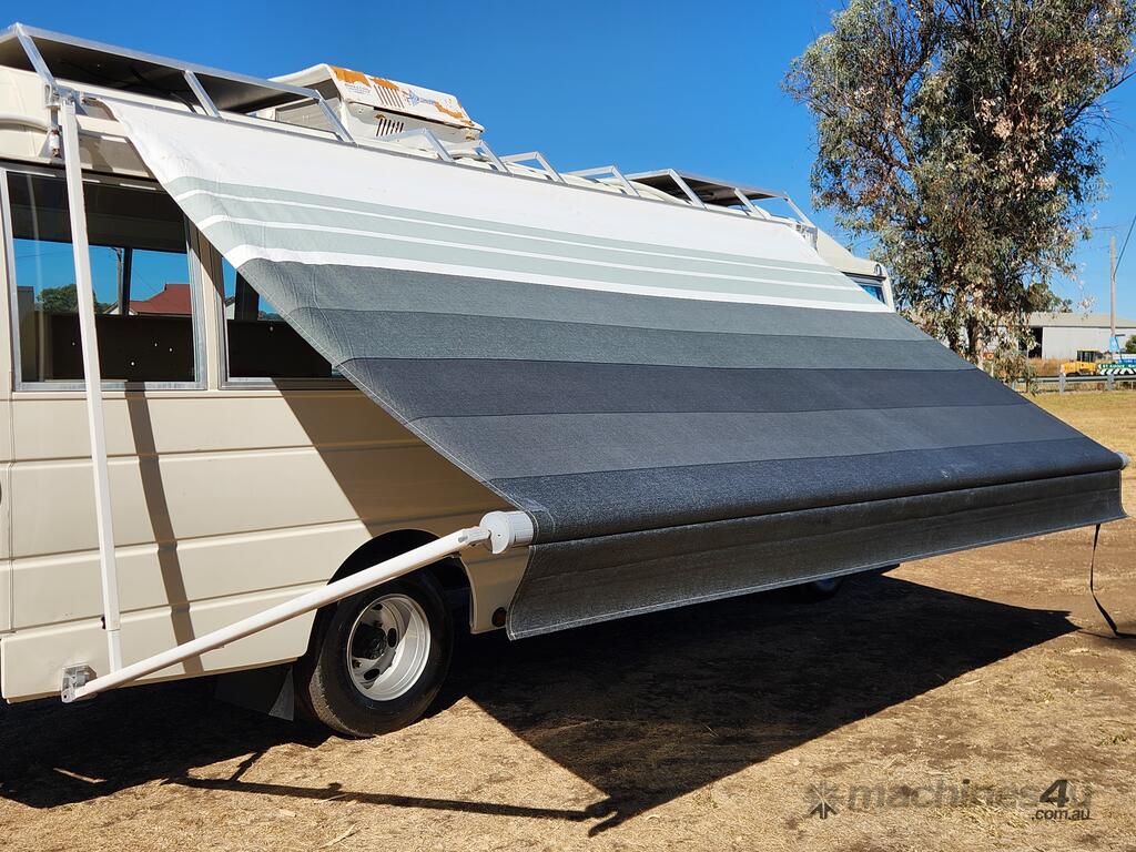 AWNLUX Dual Slide-Out Awnings on both sides of Bus. Awnings are 4270 Wide x 2300 Deep