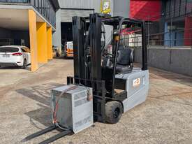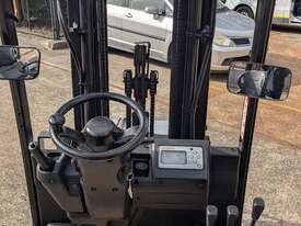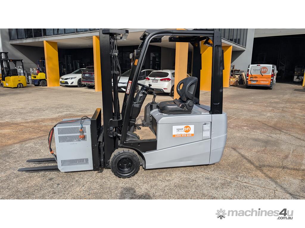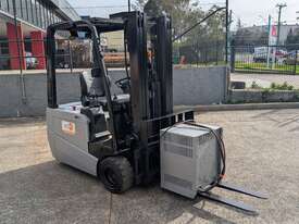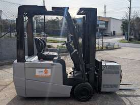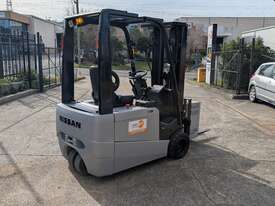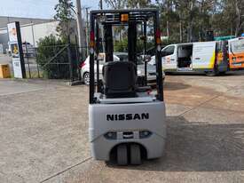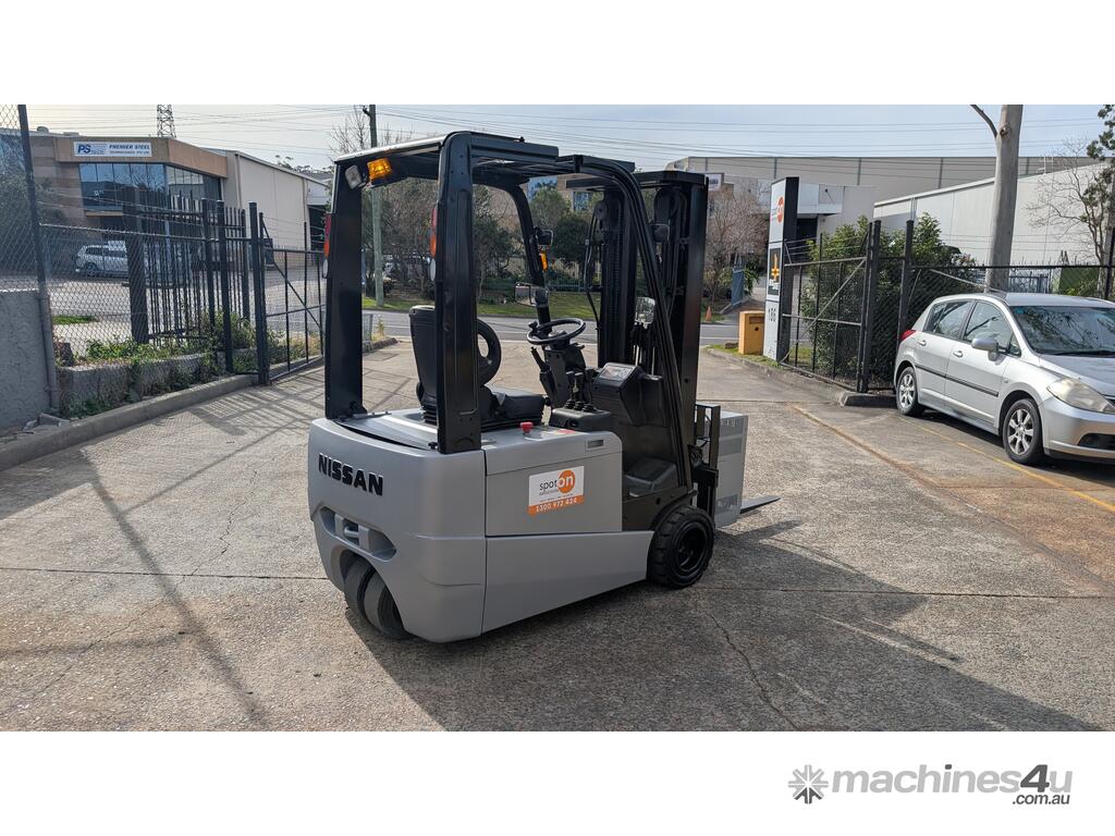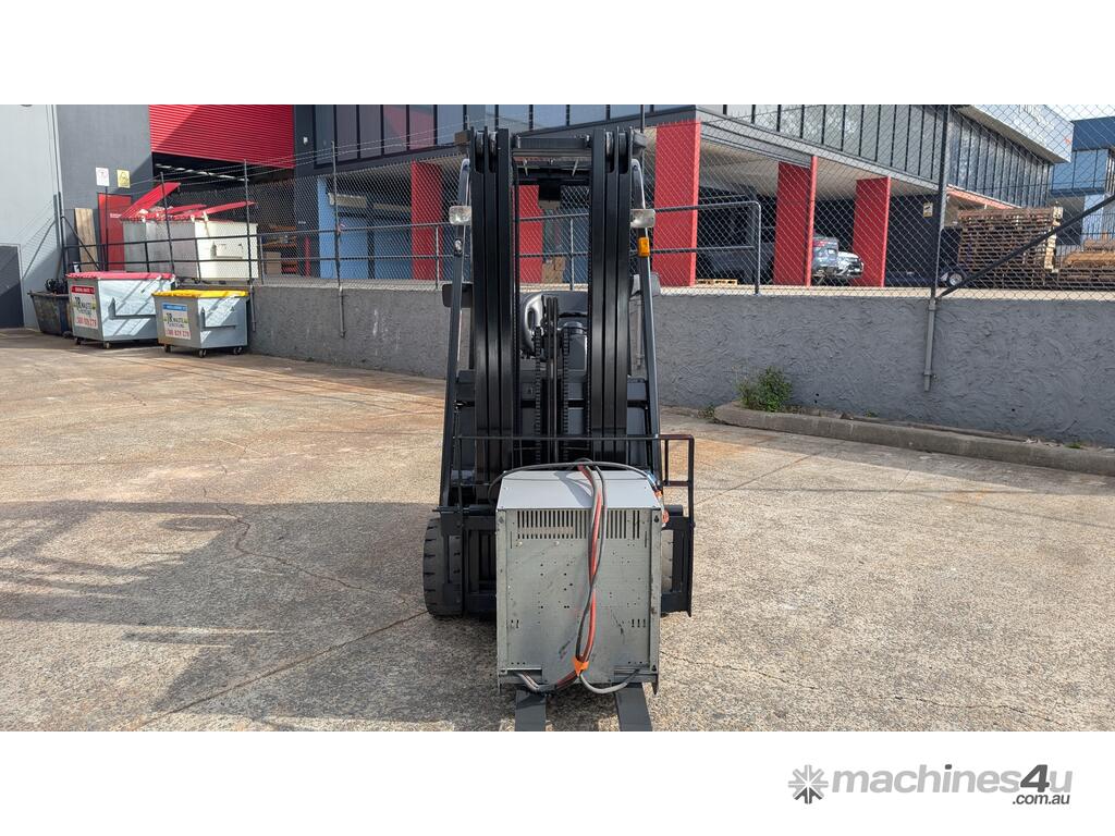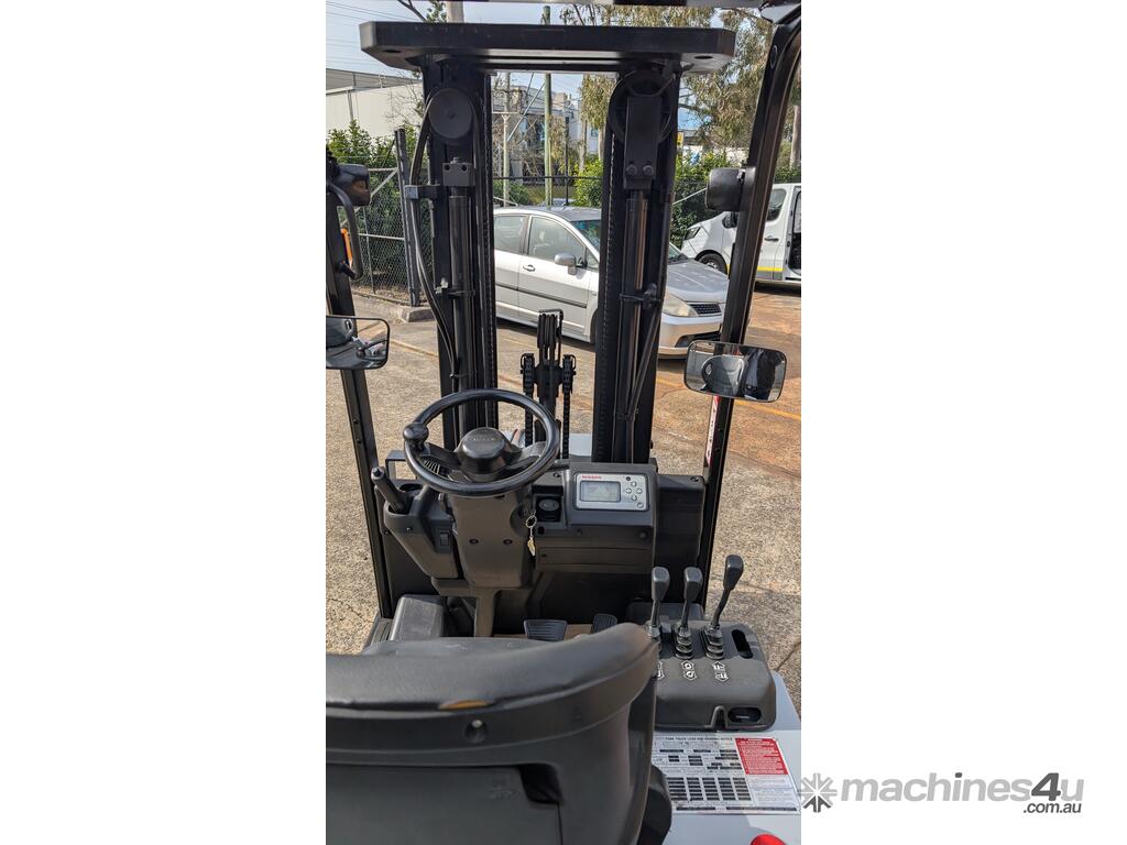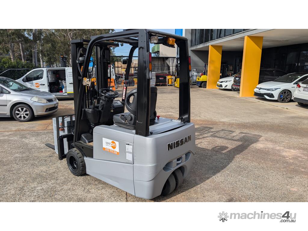 Compact electric counterbalance forklift suited to warehouse, freight, and container unloading applications. This Nissan G1N1L18HQ is designed for tight spaces and low-clearance work while still offering strong lift height and control.