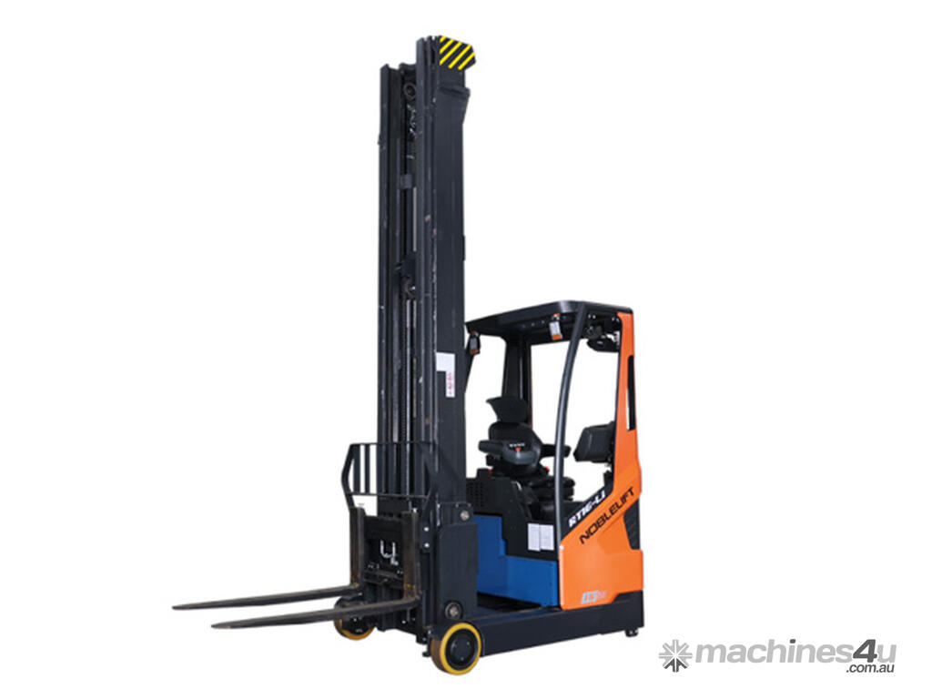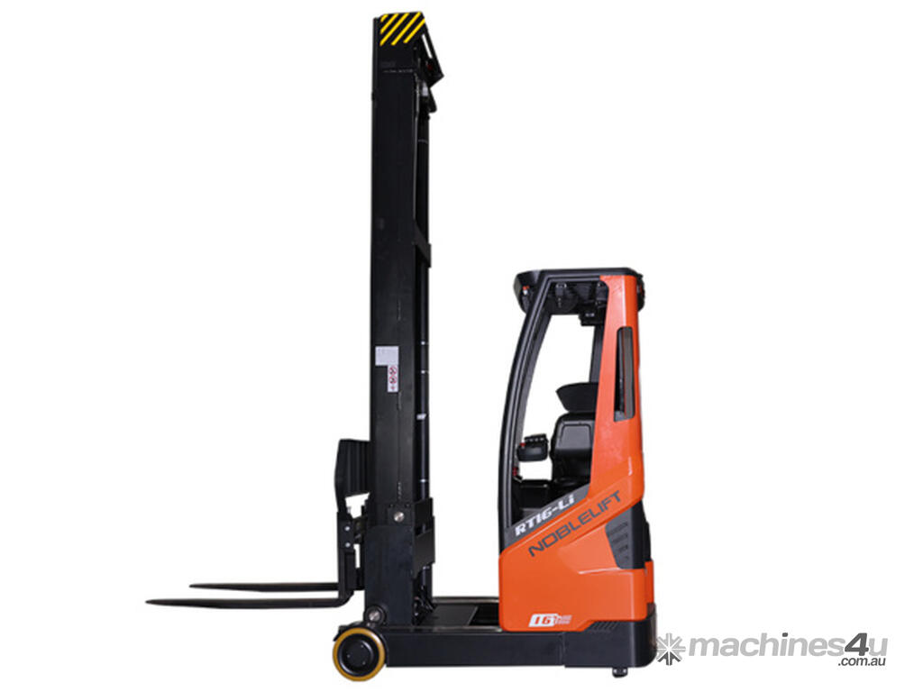 Lithium battery ride-on reach truck RT16Li with unique design. The cabin adopts four columns to penetrate the frame which is both beautiful and safe. Wide field of vision and driving space along with high elastic shock-absorbing seats provide a unique driving pleasure.
