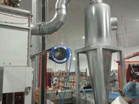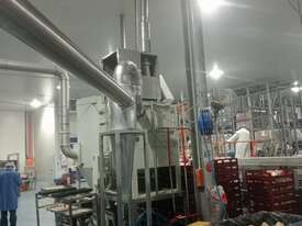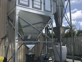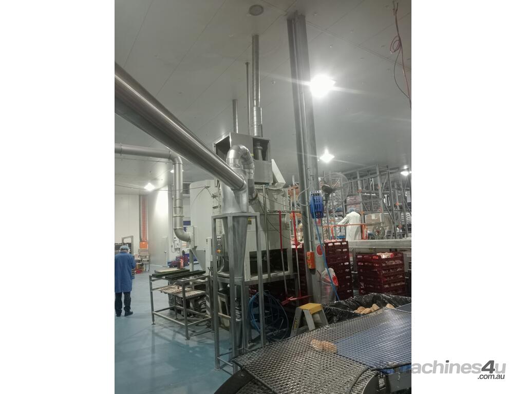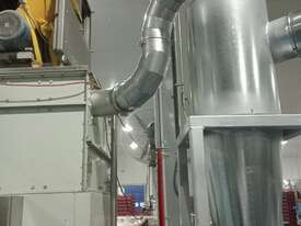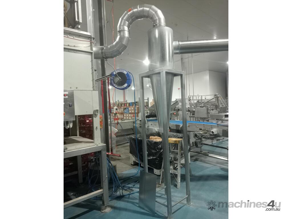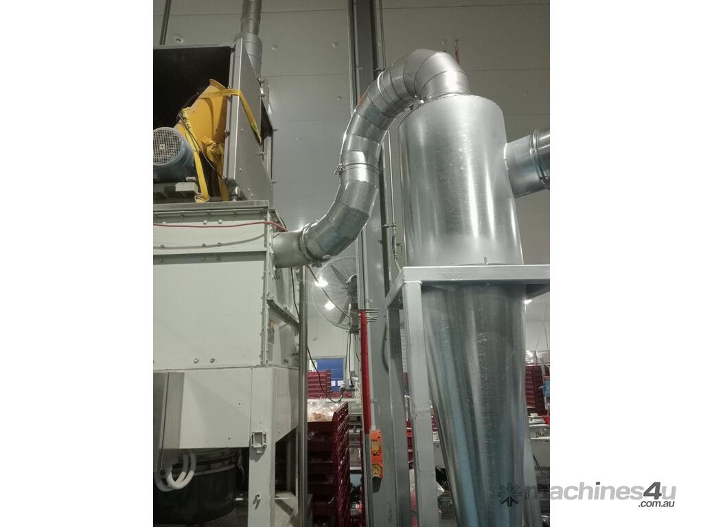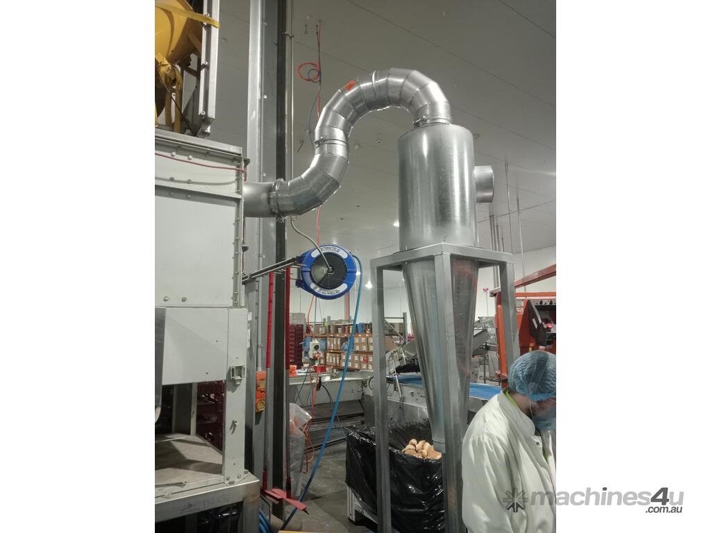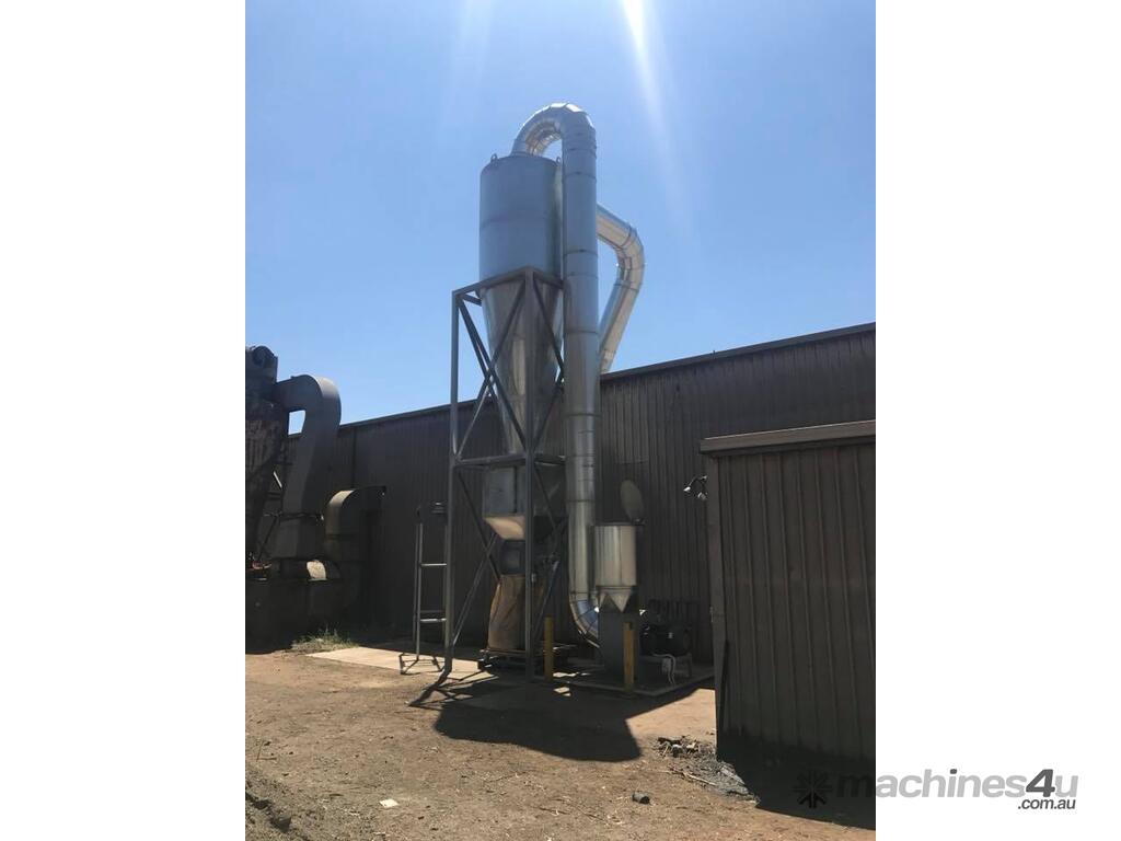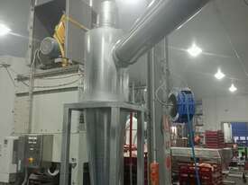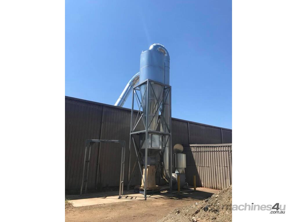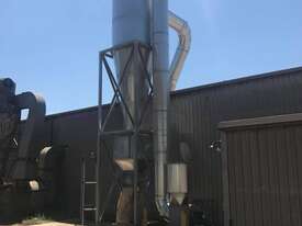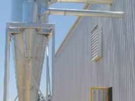 Cyclones are generally used for pre-separation of large dust particles from an air-stream. Finer and lighter particles in the air-stream are generally collected by fabric dust collectors located further downstream of the process. Rotary valves are commonly connected to the product discharge of cyclones to feed collected dust into collection bins below, or into other equipment such as screw-conveyors, transfer fans and silos.