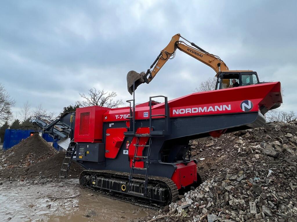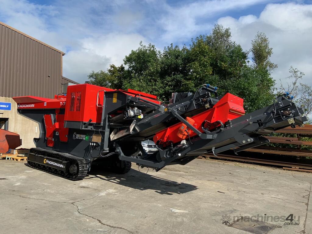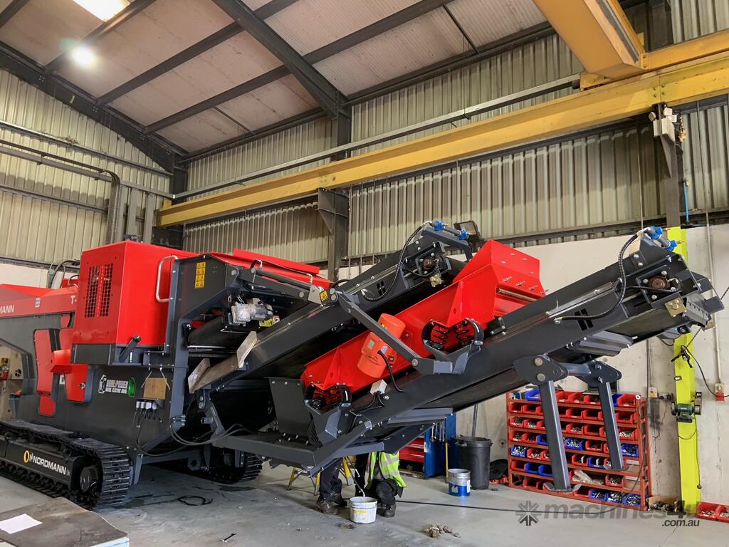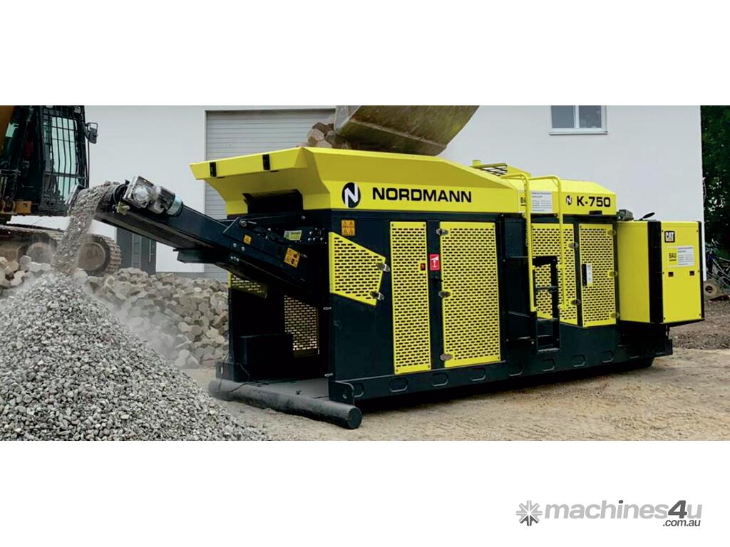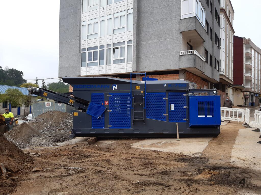 Nordmann T-750 Jaw Crusher with attached screen offering two finished sizes. Diesel electric that can be connected to mains power and only uses around 12 lph. Weighs 20 tonne and very quite ideal for city projects