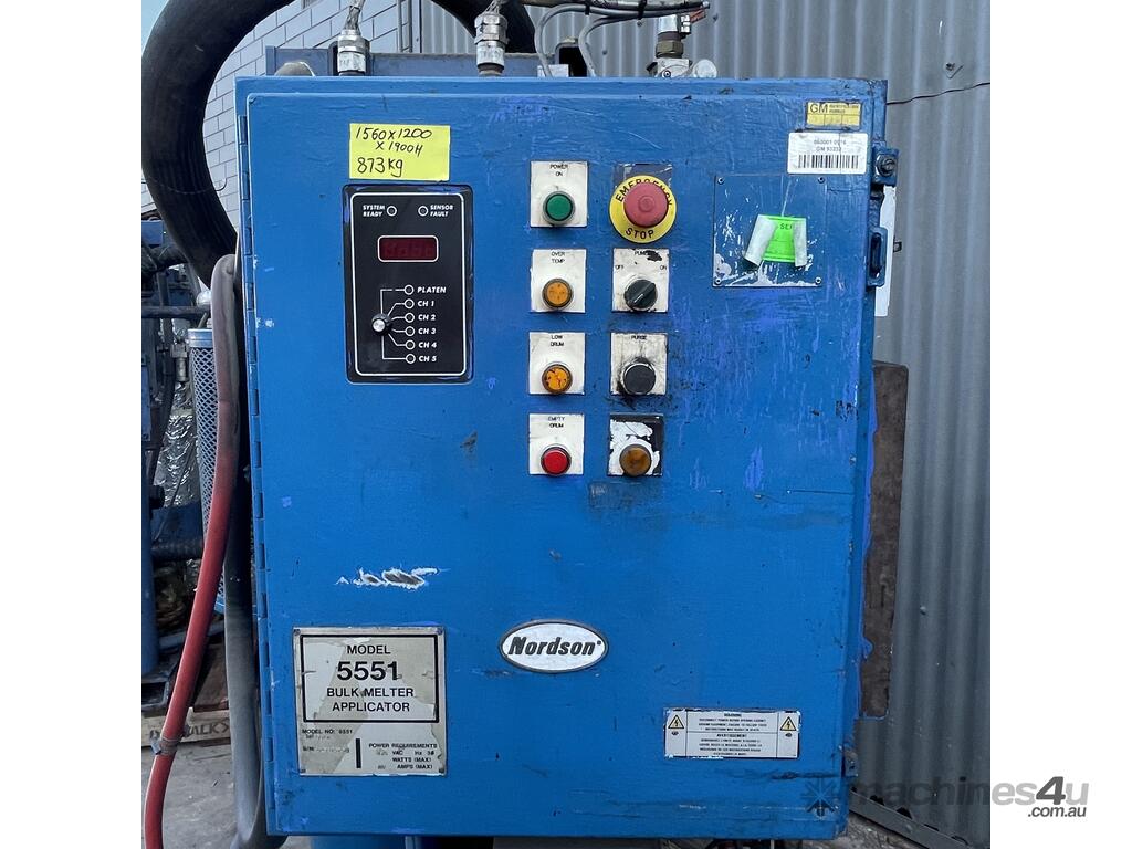 Nordson Bulk Melter Applicator 5551 200L Polyurethane Monomer drum unloader pair