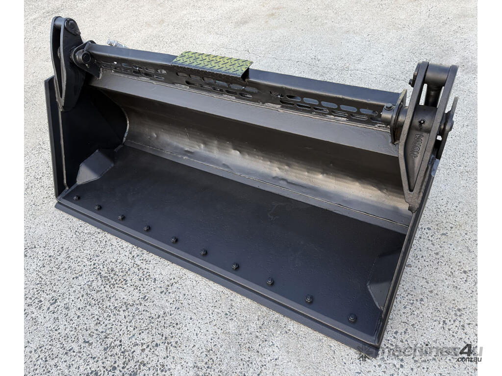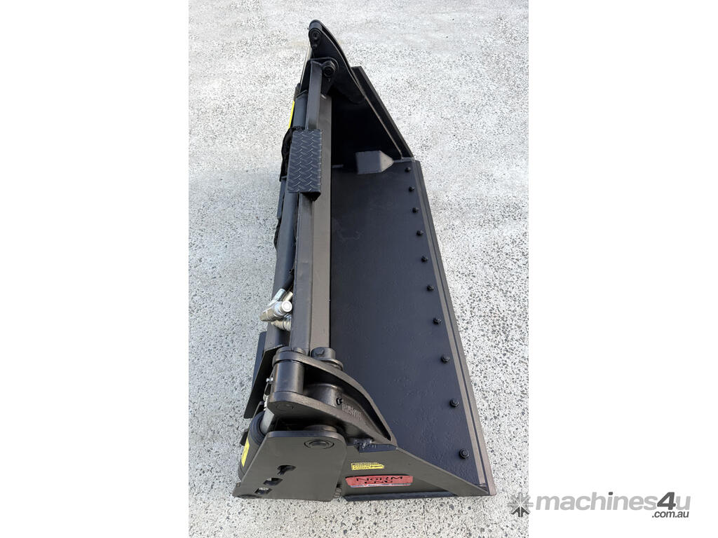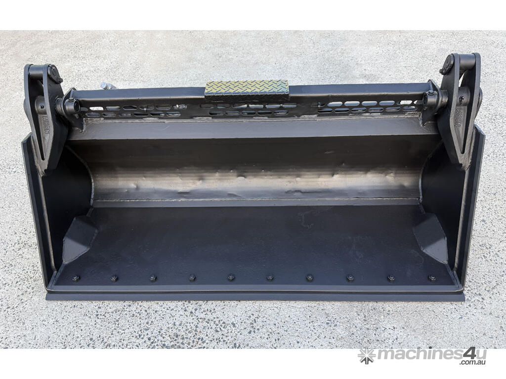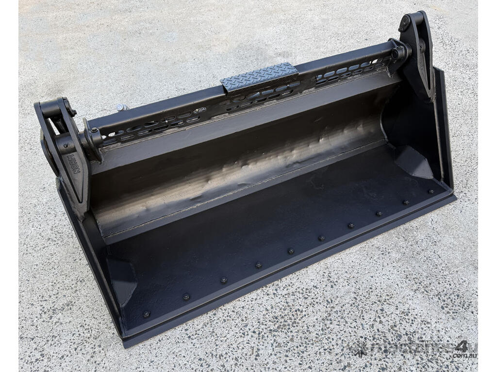 Norm Engineering 4in1 bucket for skid steers – 1575mm wide – very good used condition – heavy duty 20mm BisAlloy floor – bolt-on reversible cutting edge – flat-face couplers – 0.28m3 capacity – weight 362kg.