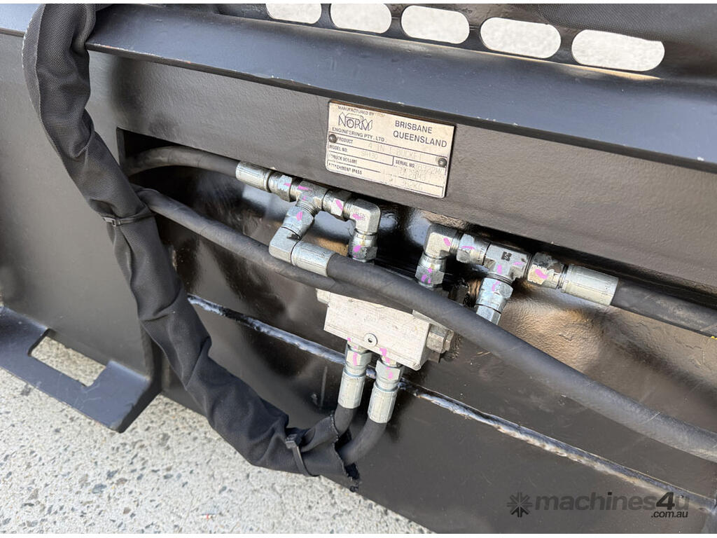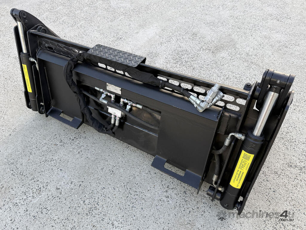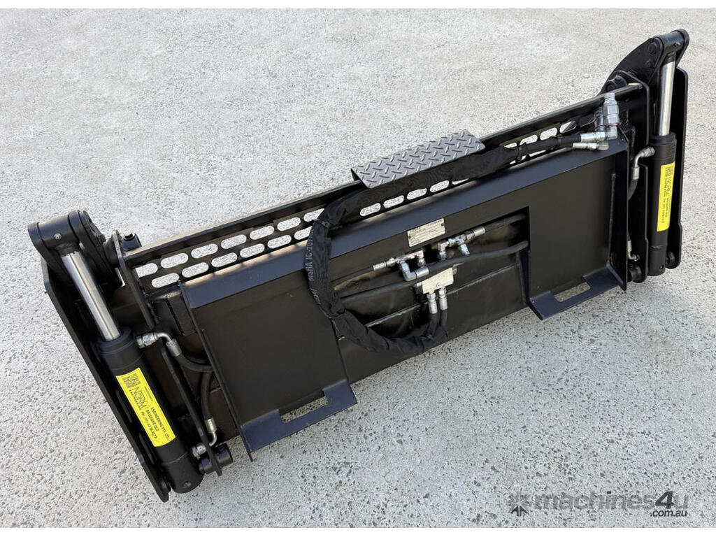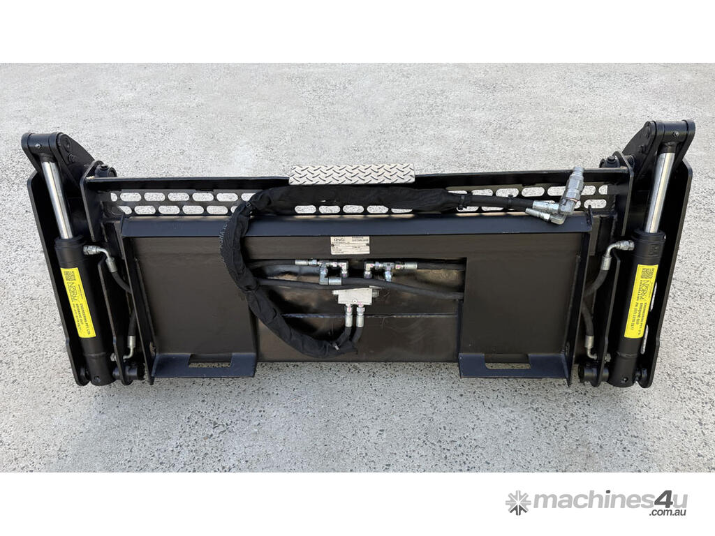 This attachment has a Universal hitch (1135mm wide) used across a range of skidsteers including Caterpillar, ASV, John Deere, Clark, Case, Kubota, Bobcat, Cougar, Terex, Gehl, Mustang, Komatsu, New Holland, Takeuchi, JCB, Volvo and Toyota Huski (where universal hitch has been specified).