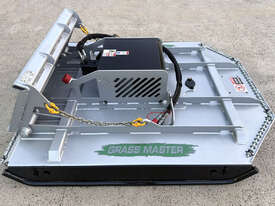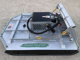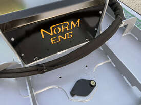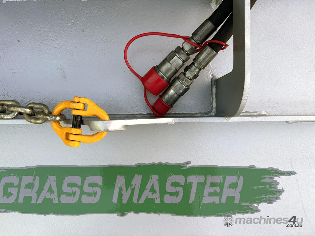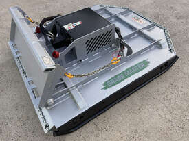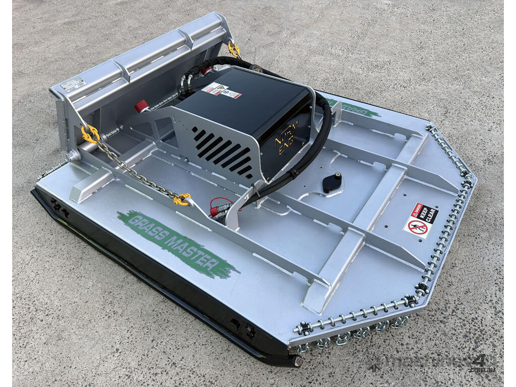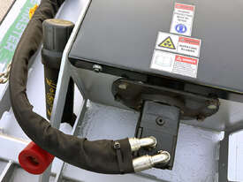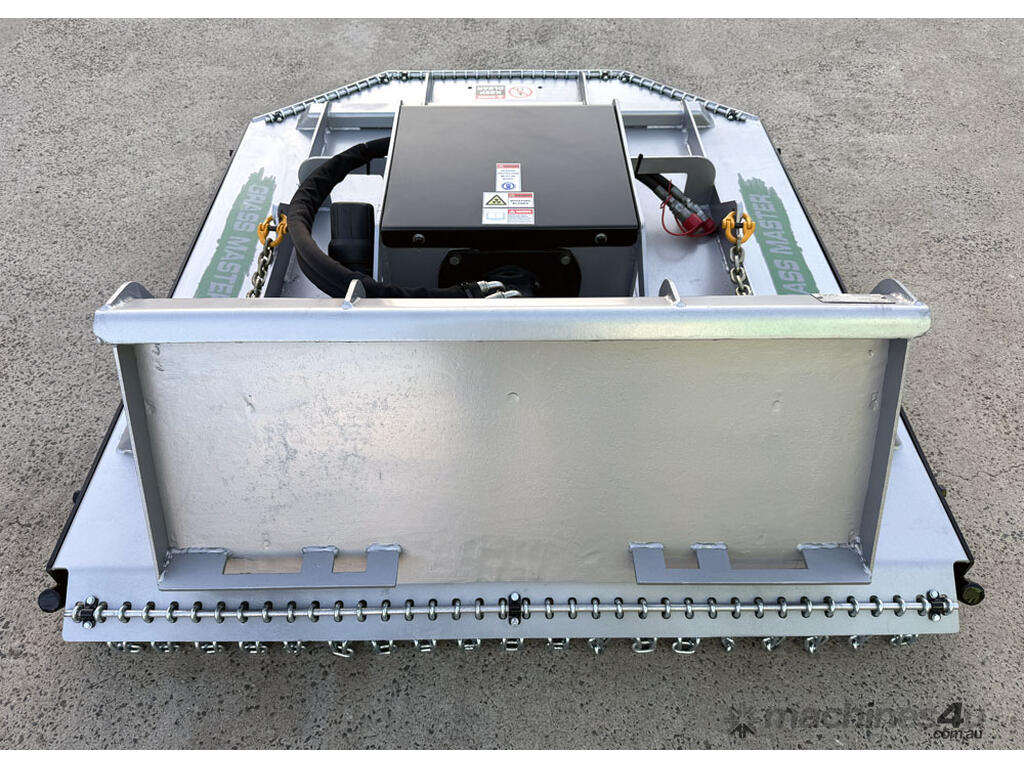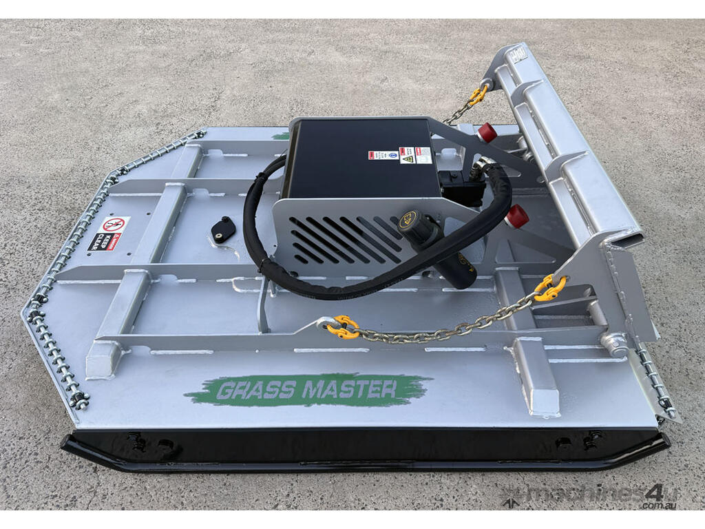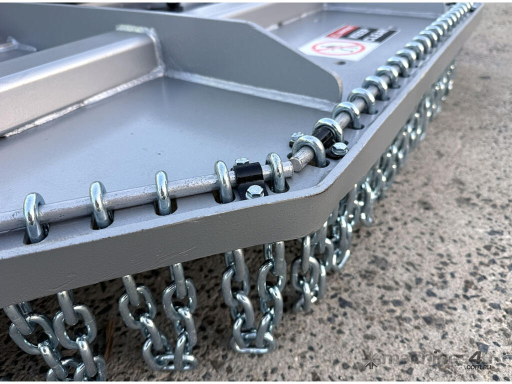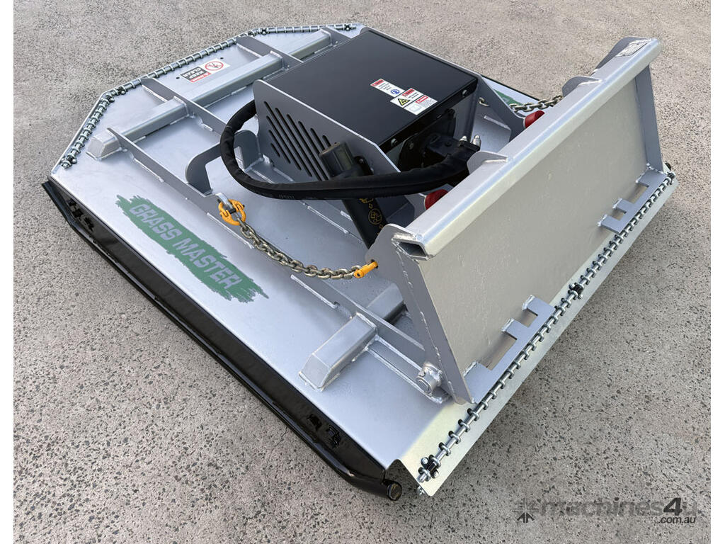 Norm 5ft slasher for skid steers – 1500mm cut (1650mm overall width) – excellent condition (renovated) – heavy duty construction – single cutting bar (blades sharpened and new blade bolts fitted) – new front and rear chain curtains for debris suppression – adjustable and replaceable side skid rails – fitted with forklift points on the slasher deck – floating frame – flat-face couplers – designed for low hydraulic flow (40-60 lpm) – weight approx 490kg – designed and manufactured in Australia.