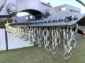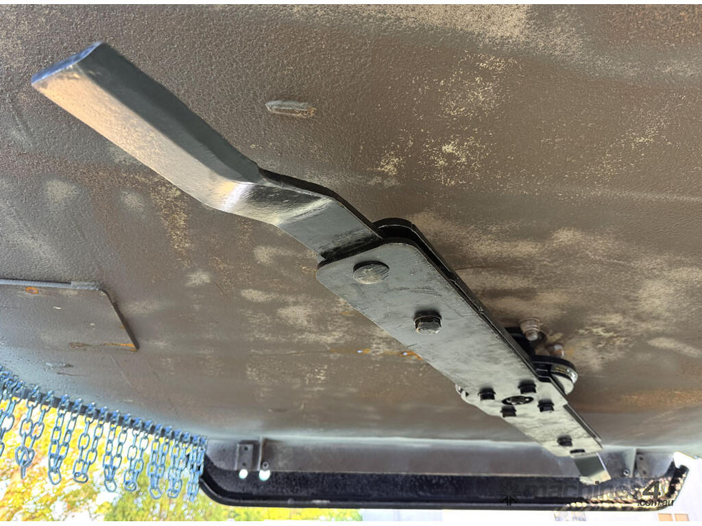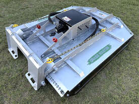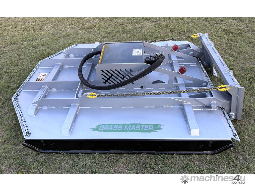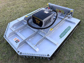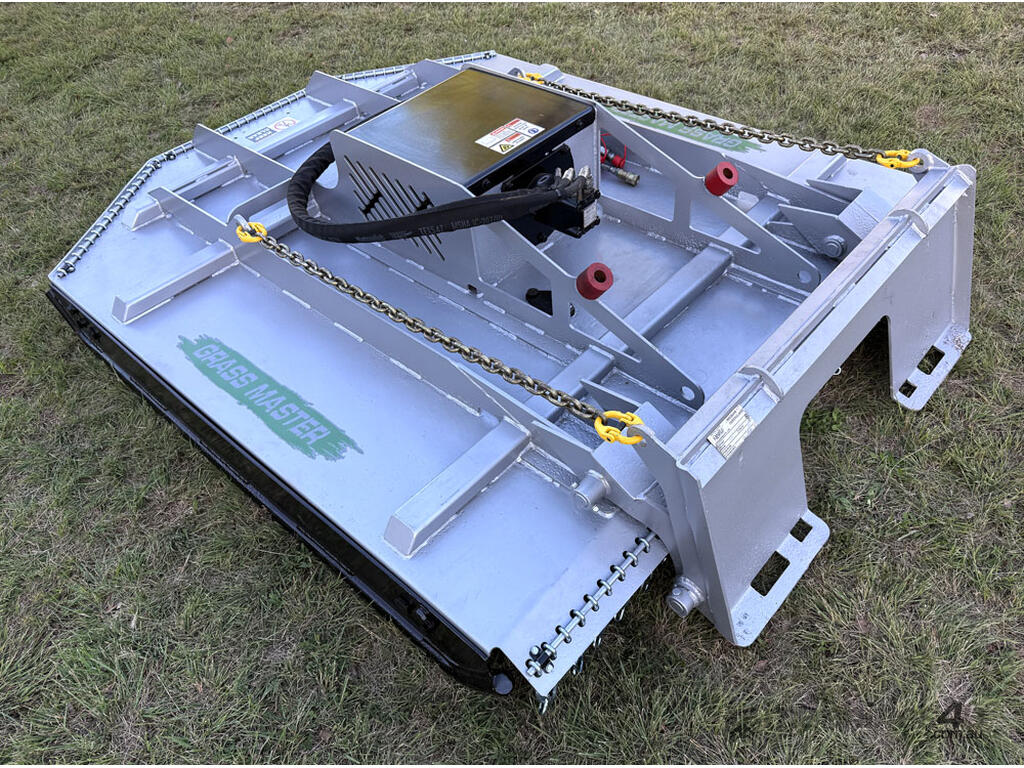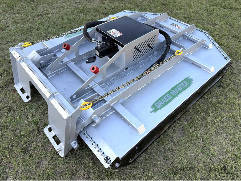 Norm 6ft slasher for skid steers – 1800mm cut – very good condition (renovated) – heavy duty construction – single cutting bar (blades sharpened) – new front and rear chain curtains for debris suppression – adjustable and replaceable side skid rails – fitted with forklift points on the slasher deck – double-pivot floating frame (designed for air conditioned skid steers with side opening doors) – flat-face couplers – designed for medium hydraulic flow (40-60 lpm) – weight approx 650kg – designed and manufactured in Australia.