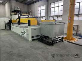 The Intec G2 713 XL (wider tank design) Waterjet is one of our increasingly popular gantry cutting systems able to deliver maximum efficiency capabilities along with an extended cutting envelope for wider material sheet sizing. This system sizing is preferred in the stone and metal industry when activating PAC60 5 Axis cutting to be able to process complete cutting applications on a single large dimension sheet of material.
