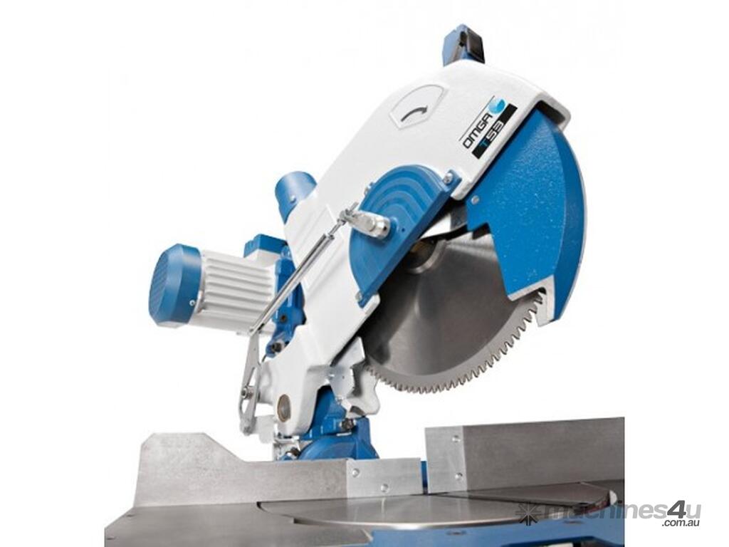 Heavy duty Precision Mitre Saws. It features a solid cast iron base and head construction. The rotating table rides on axial roller bearings for maximum smoothness and accuracy. Positive stops at 45° - 30° - 22°30', 15° - and 10° on both sides of the rotation and an independently fine tunable one at 90°. A manual locking device for all the intermediate angles provides a great flexibility to this unit. The belt driven powerful 3 HP induction motor makes the T 50 350 the ideal tool for heavy duty industrial usage. This machine is designed to be fitted with a wide variety of optional accessories to make it perfect for any application. This precision saw is a multi purpose machine suitable for use in general carpentry, for cutting moulding, picture frames, furniture components and any application requiring precision cutting. Also available the "Compound Mitre Version" T53 370.