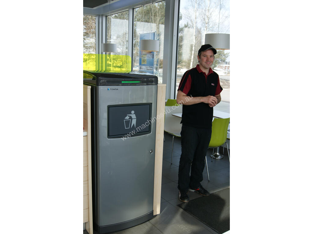 The multi-tasking TOM is a new cool waste compaction system for public places. Ideal locations are restaurants, cafés, food courts, airports, bus and train stations, theme parks and malls. TOM is about the same size as a conventional waste bin but can hold up to seven times as much waste! Featuring hands-free operation, it keeps your environment tidy, hygienic and inviting. Thanks to the new feature TOM Connect, TOM is able to communicate when the bag is full or the unit needs attention.