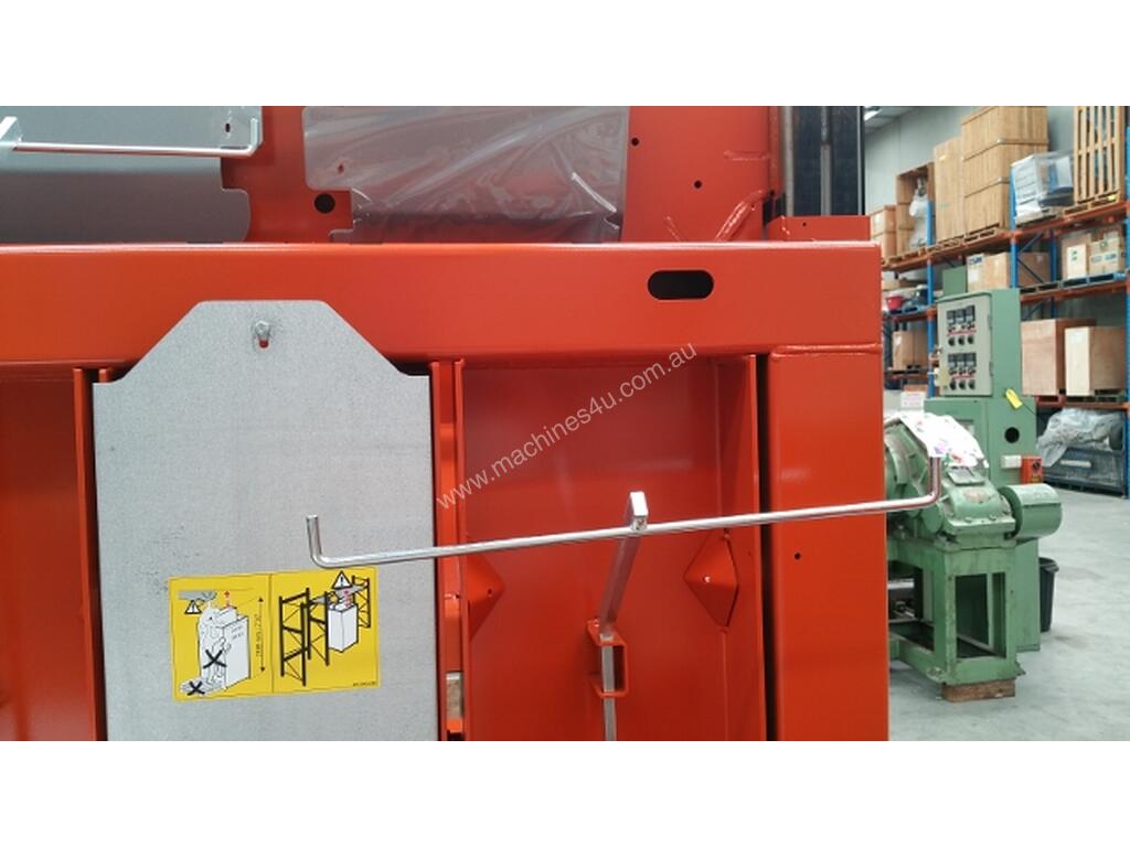 The 3320 model has the lowest installation height (1980 mm) and produces the lightest bales in the Power product family. It comes with a regular pendulum door and is perfect for locations with reduced ceiling height.
