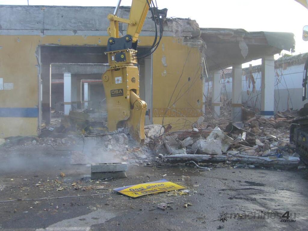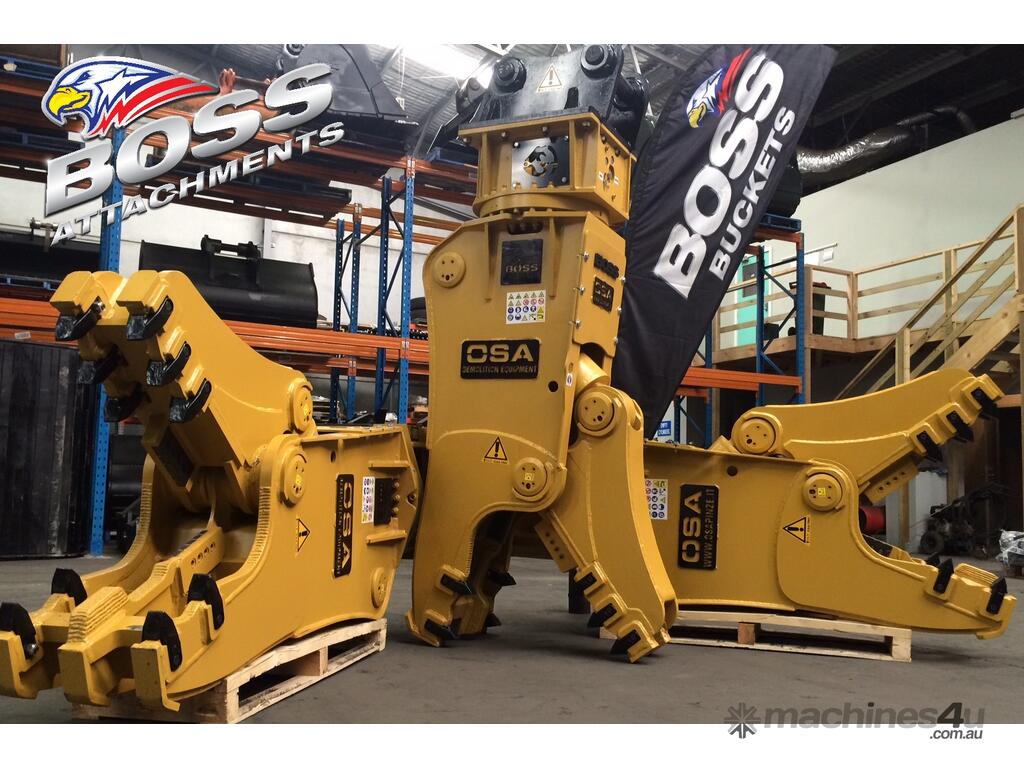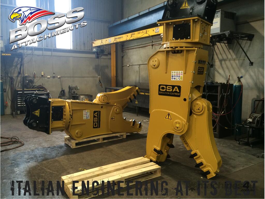 The OSA RV SERIES of Rotating Pulverisers by BOSS BUCKETS is designed to work in extreme primary & secondary demolition applications where productivity is a key factor. RV hydraulic rotating pulverisers have been manufactured with HARDOX 400 to resist wear and tear and they have a regenerative circuit for a fast opening and closing of the jaw. Hydraulic rotation (360°) gives precise positioning of the Pulveriser in all working conditions. Concrete structure are demolished, pulverized and steel reinforcements are separated and compressed in minimal time. This efficient procedure results in a considerable reduction of dumping and transportation costs.