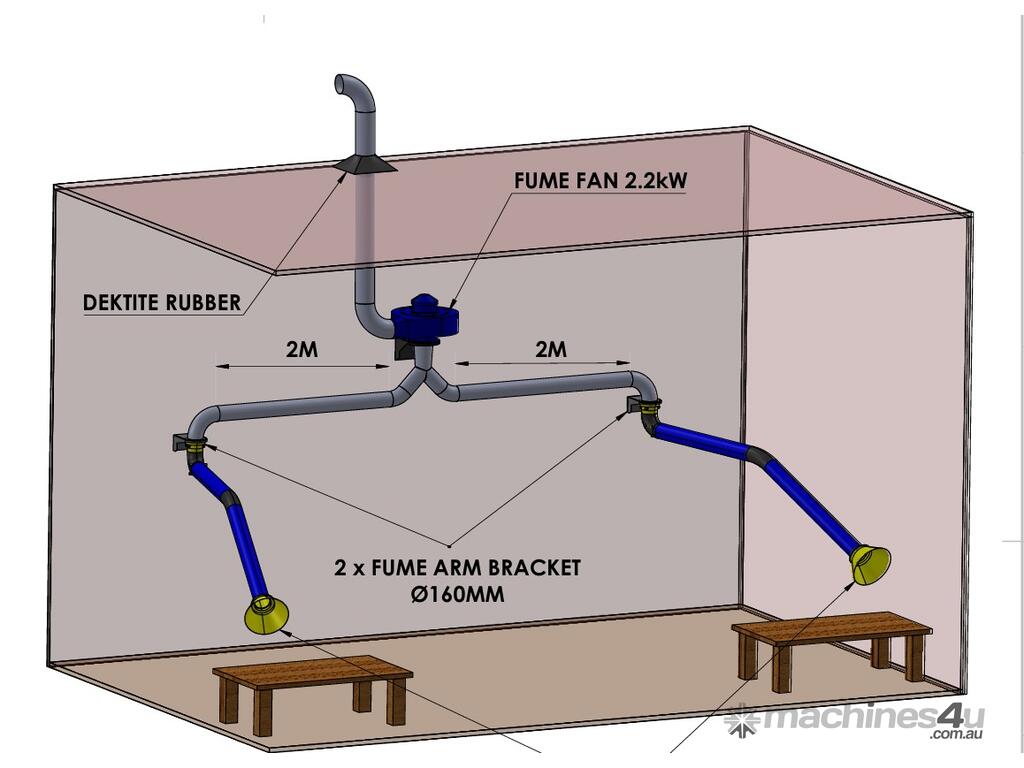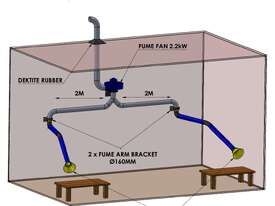 2x 160dia/4m reach Fume Arm - our arms boast 4x air flow efficiency of others on market