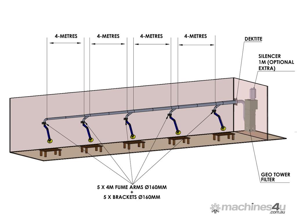 5x 160dia/4m reach Fume Arm - our arms boast 4x air flow efficiency of others on market
