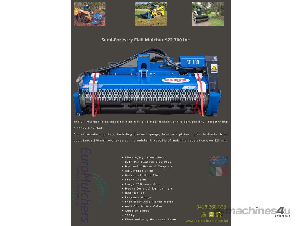 Since 2011, Euro Mulchers has been importing forestry and flail mulchers from Italy. In that time we have sold mulchers to over 1000 customers with, excavators, skid steers, mini loaders and tractors, ranging from from 1 to 35 tonne, 25 to 120HP. We now what our mulchers requires in order to achieve maximum performance, we also understand oil flows and pressures of most machines out there, including yours more than likely. Buying from us will give you confidence that your machinery has been paired up with the correct mulcher.