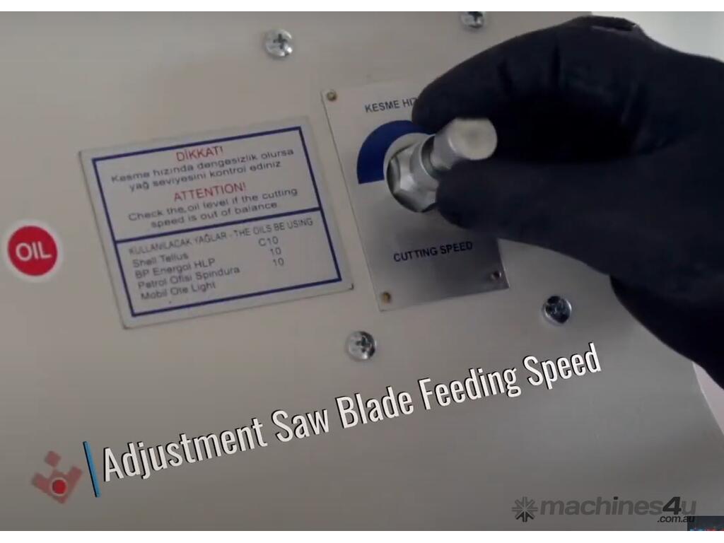 Hydro-pneumatic saw feed system ensures consistent smooth & safe cutting action.