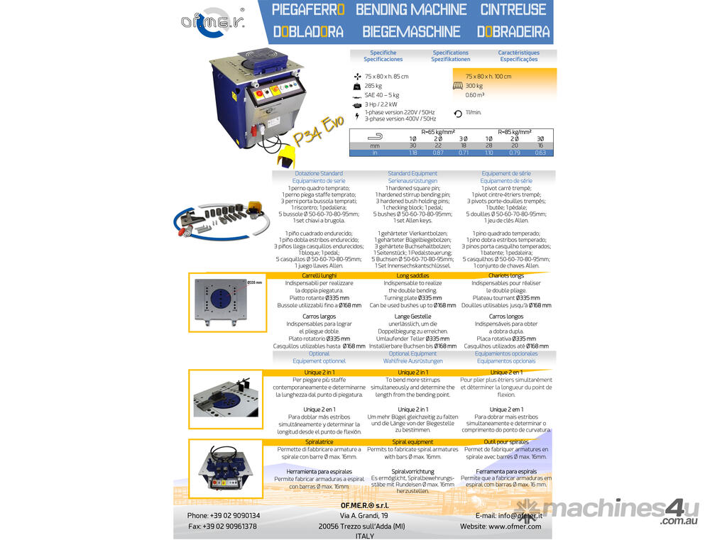 We are pleased to offer the P34 EVO Rebar bending Machine, specification are as follows: