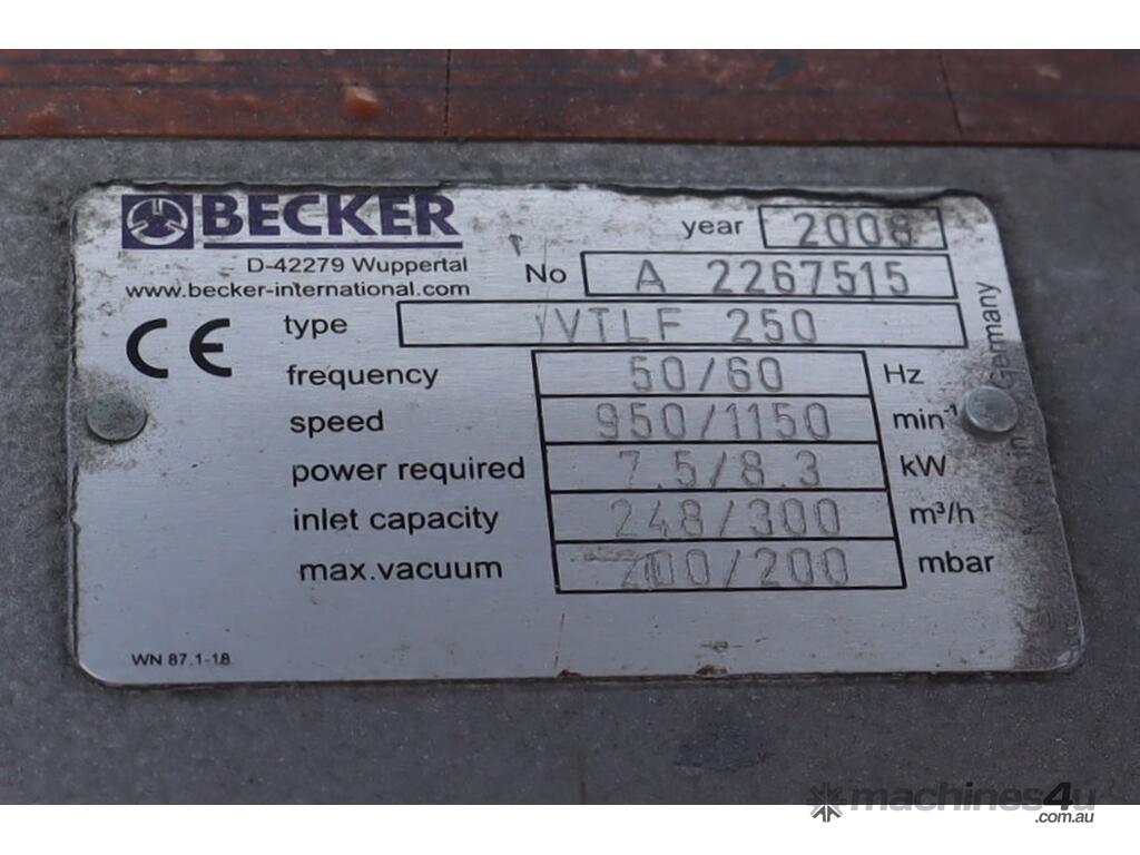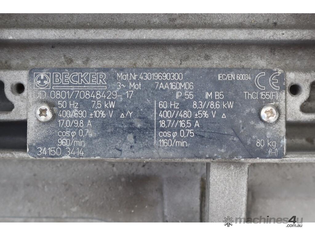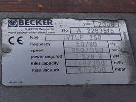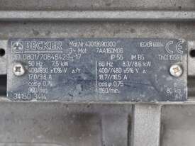 Industrial Becker oil free rotary vane vacuum pump in excellent condition and designed for continuous vacuum generation. Commonly used as a central or dedicated vacuum source in manufacturing environments where clean, reliable vacuum is preferred.