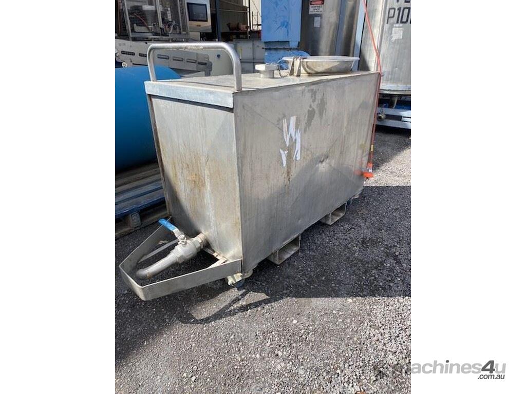 500L Food grade stainless steel 240v heated storage vat. On wheels, fork lift pockets. 2 inch outlet.3 available Price per tank