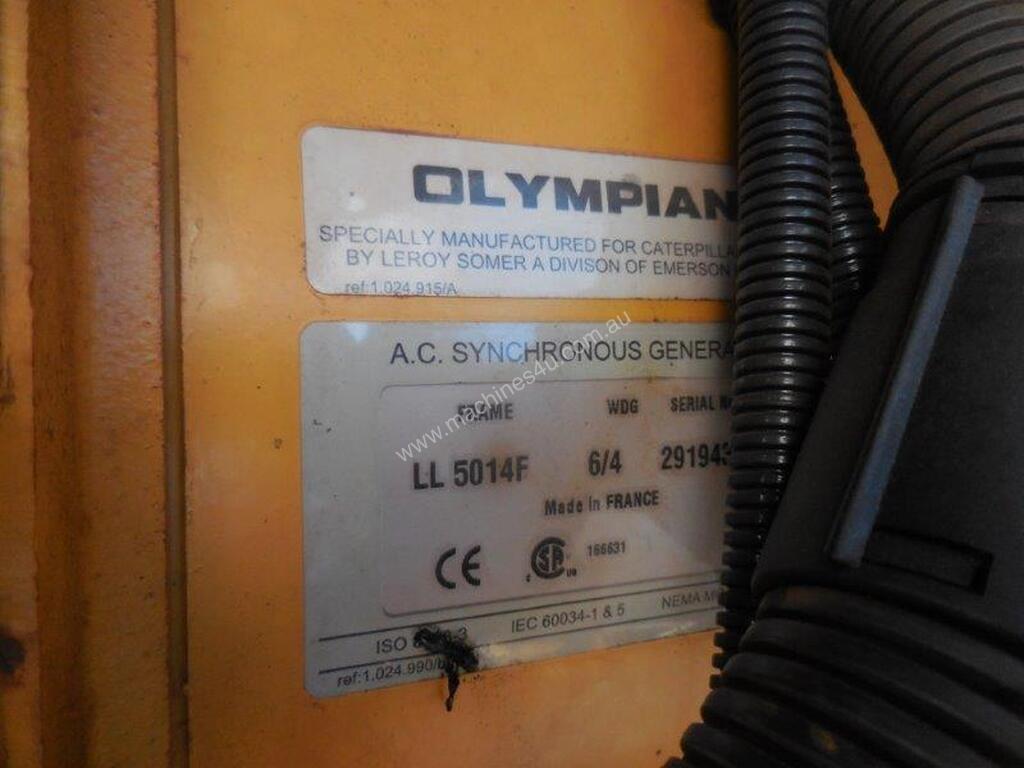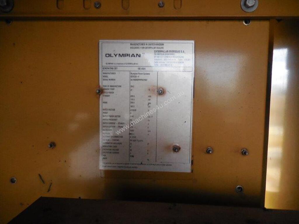 220KVA capacity, 240V/415V powe outlet, 6cyl Cat diesel motor, fully enclosed canopy