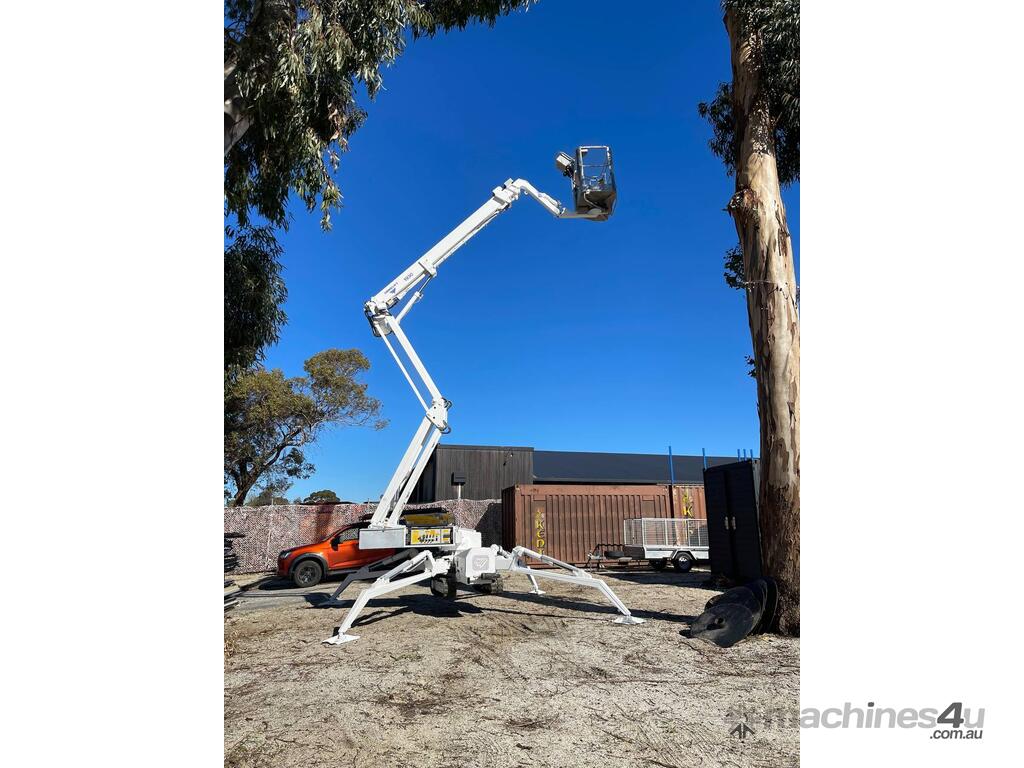 Compact crawler boom lift with 17.1 m working height and 10.2 m outreach. Fitted with a 200 kg basket capacity and dual fuel system (Kubota diesel + battery) for both indoor and outdoor use. Features zero tail swing, adjustable outriggers, and rubber tracks for safe operation in tight or delicate environments. Lightweight (approx. 3,260 kg) and highly transportable – ideal for construction, maintenance, and tree work.
