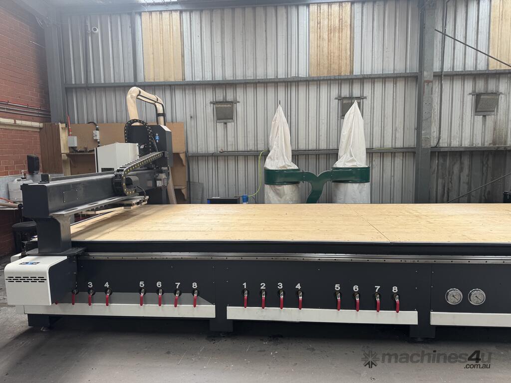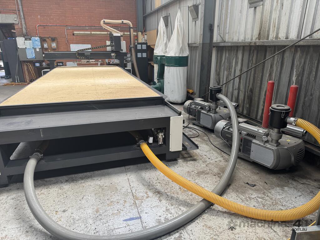 OmniCAM Pro has a 6m x 2m bed with both dual dust extraction and dual German vacuum pumps. Includes Automatic tool. Has seen little use on HDPE sheets.