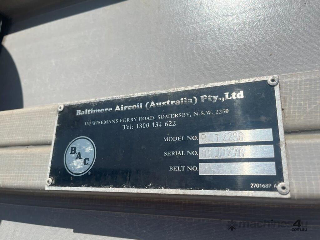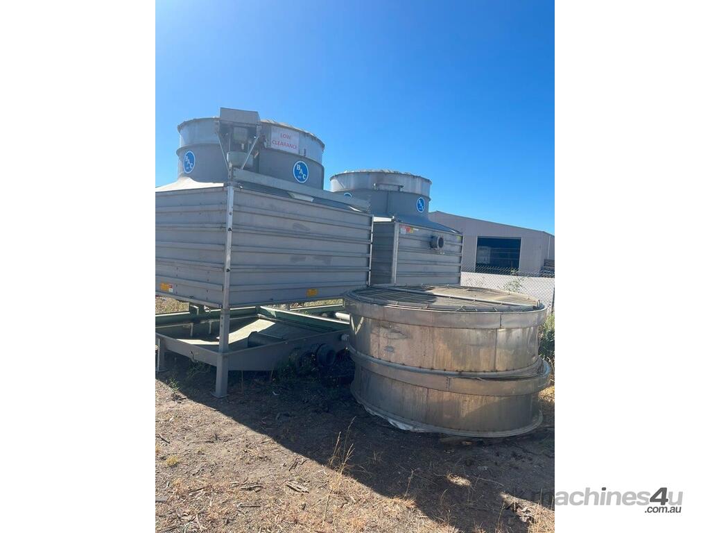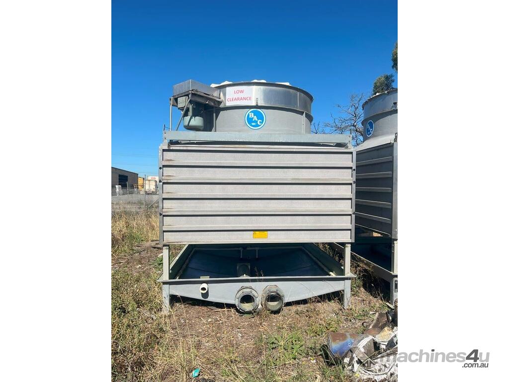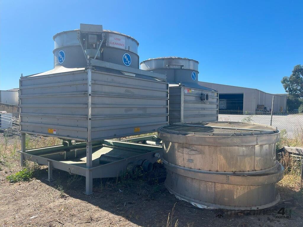 Baltimore Aircoil Australia (BAC) cooling towers - Fibreglass. 2 Units available Model: RCT2236 Motor: 415V 11kW Water Inlet/Outlet: 200mm Overall Dimensions: 2.9m X 3m X 3.4m High ( 0.7m for duct) Price is per unit.