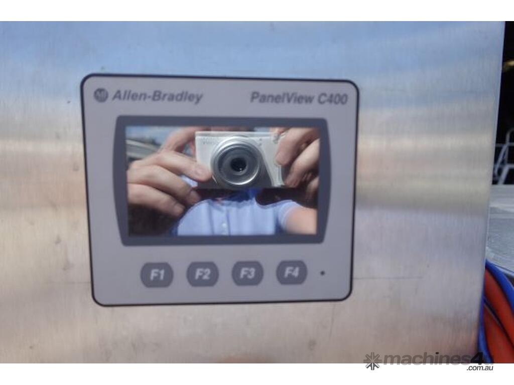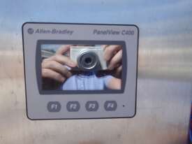 Pump is mounted on a stainless steel mobile stand with Allen Bradley PLC controls.