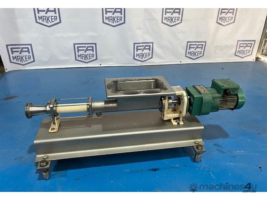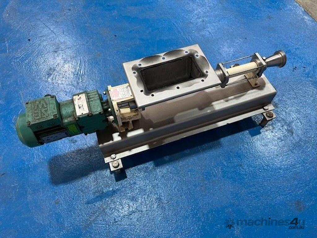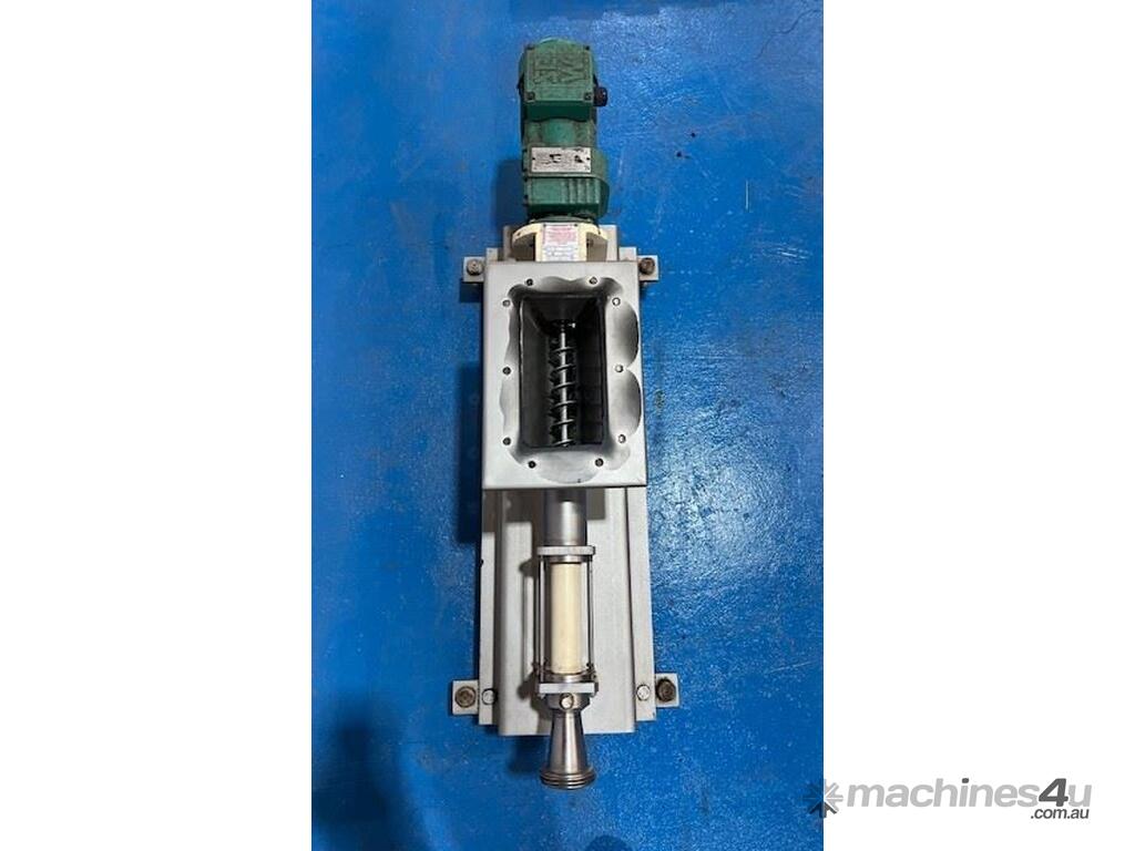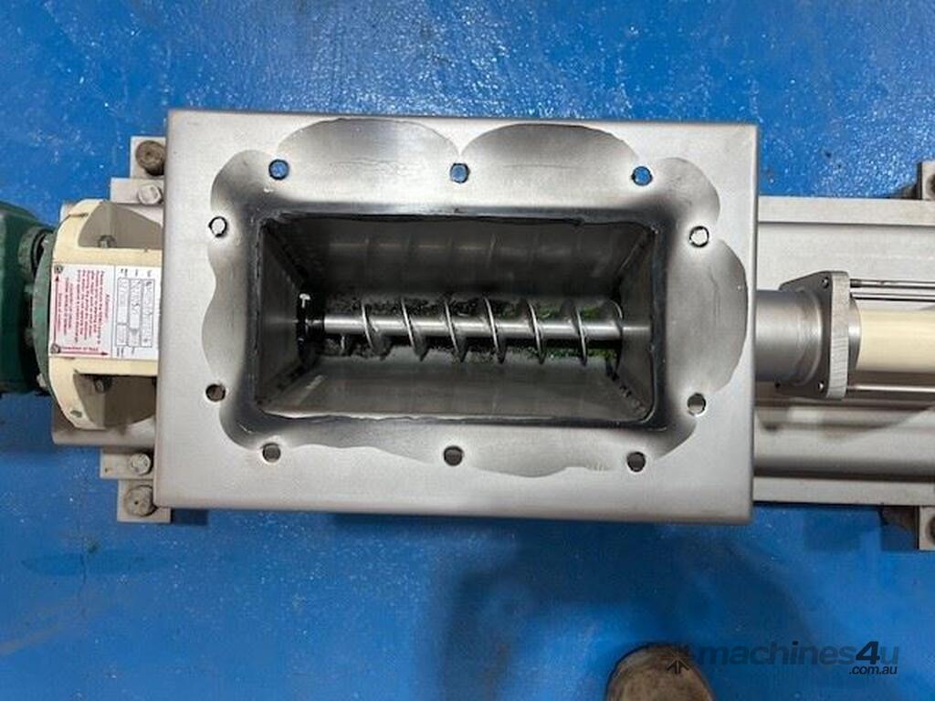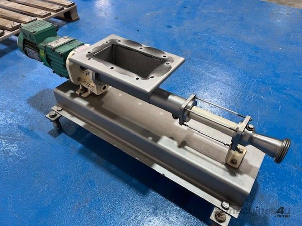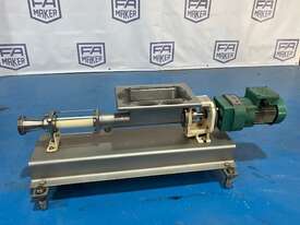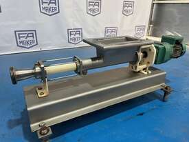 Open throat pump, with auger feed. Ideal for pumping slurries and thick products. 2 inch outlet. 0.25kw 256 rpm. Stainless steel contact parts. Approx 180lt/hr capacity