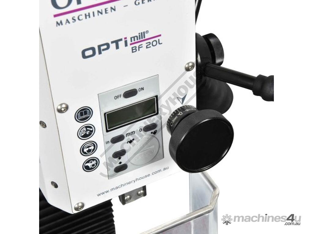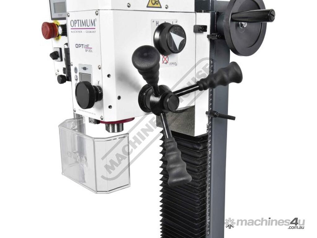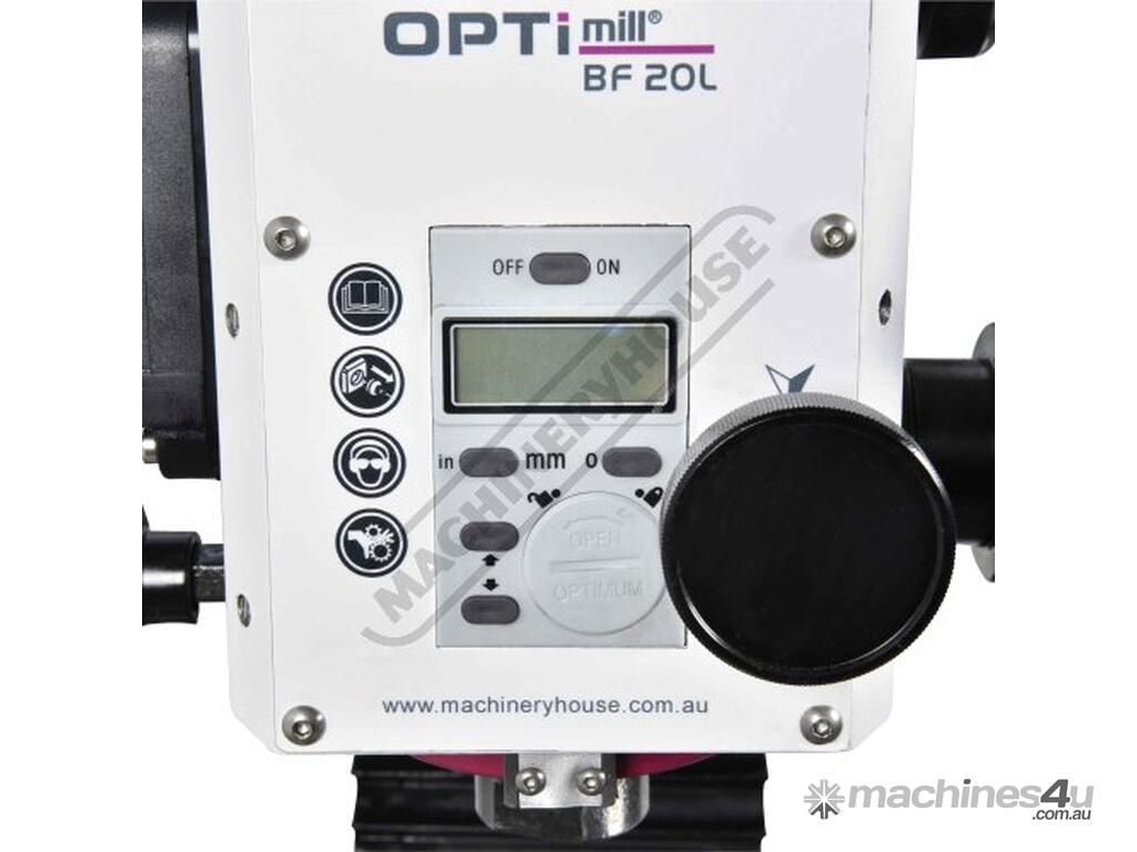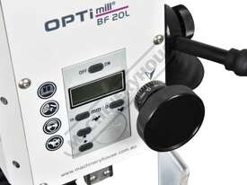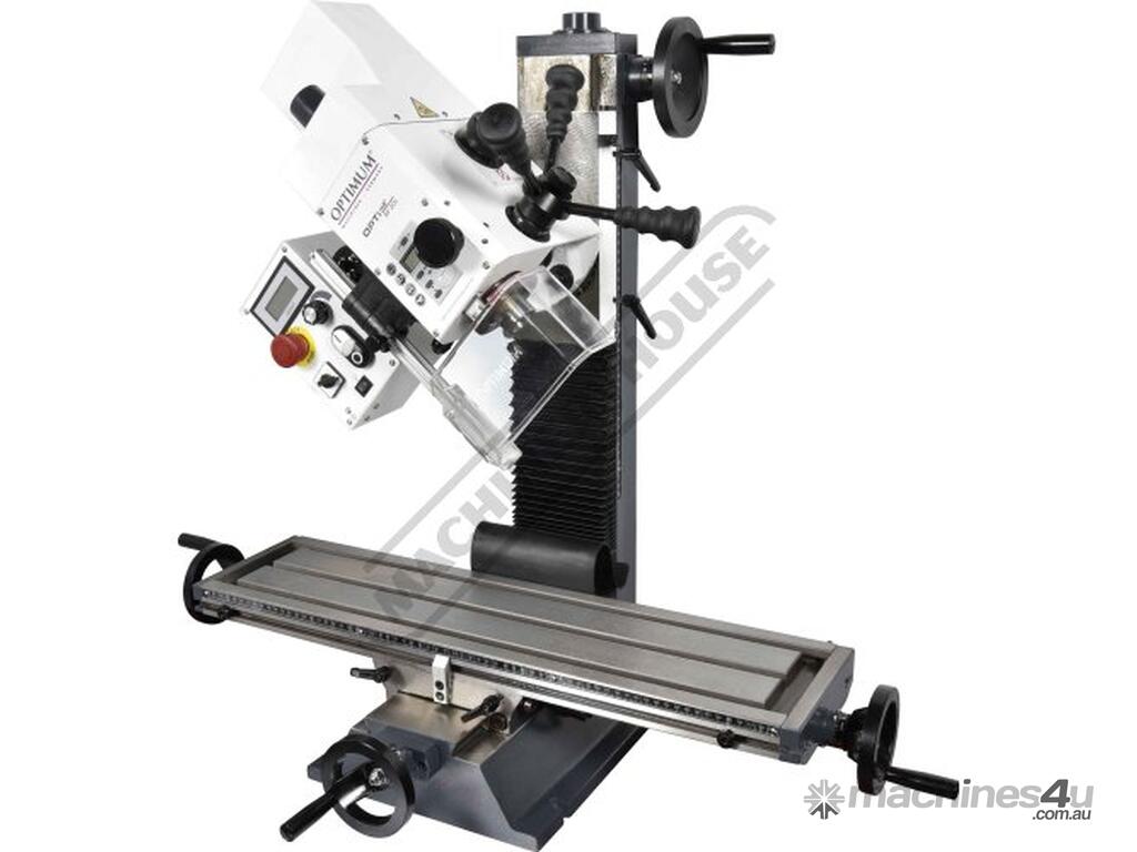 OPTIMUM Opti-Mill Drill - Geared & Tilting Head BF-20LV Table Travel: (X) - 480mm (Y) - 175mm (Z) - 280mm Electronic Variable Speeds & Dovetail Column
