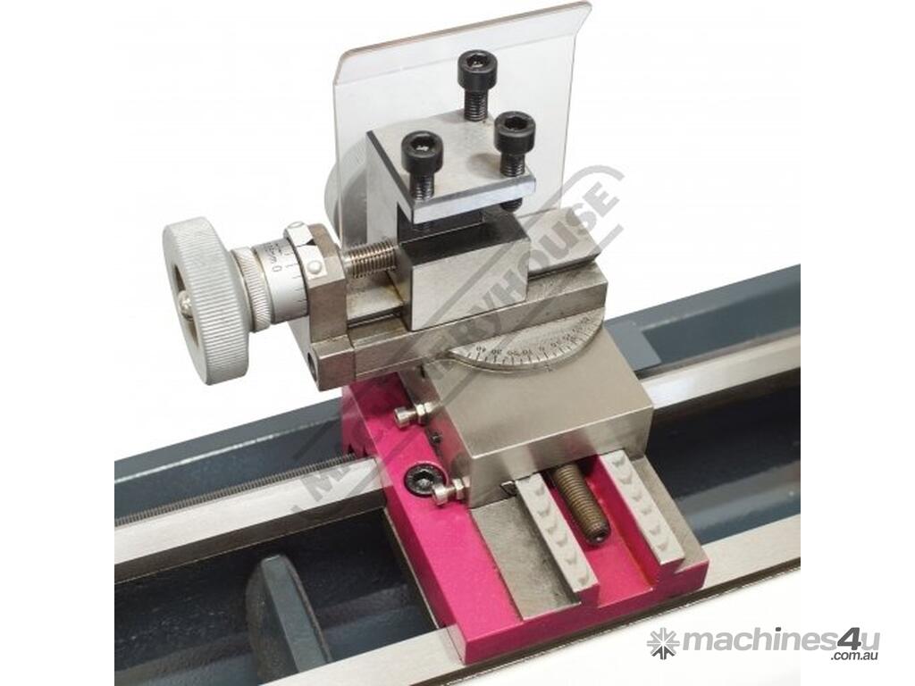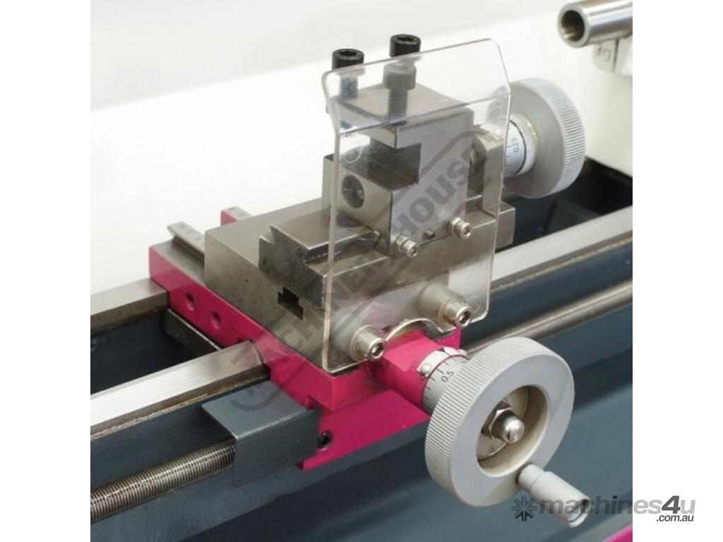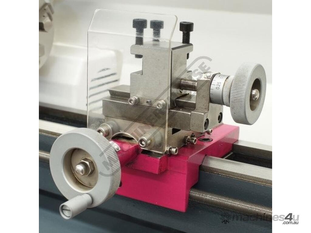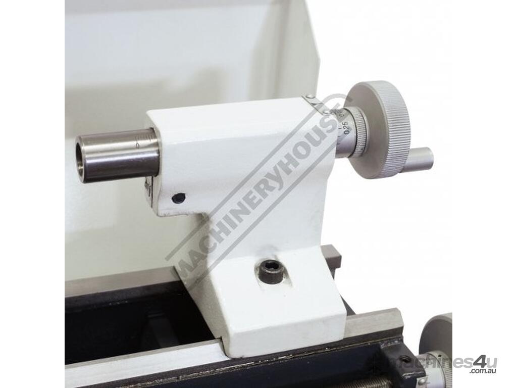Features such as the electric variable speed control, manual or powered leadscrew feed and an extensive range of accessories. The lathe comes supplied with 80mm diameter three jaw self-centring chuck, tailstock centre and service tools.