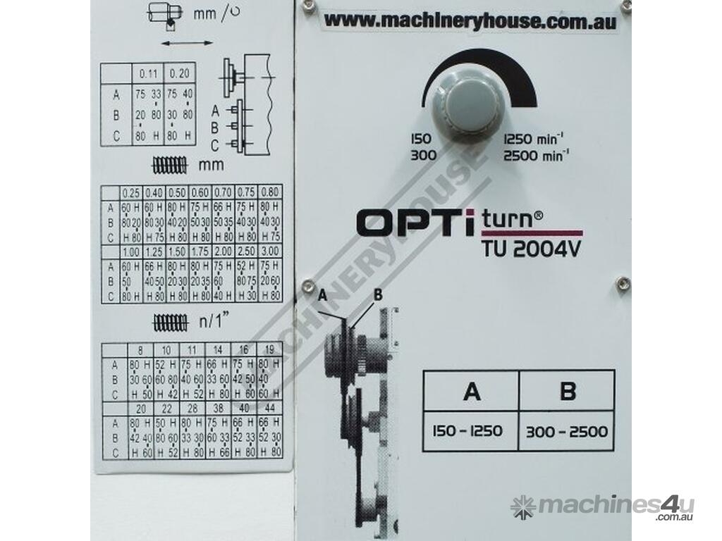 OPTIMUM Opti-Turn Bench Lathe TU-2004V Ø200 x 300mm Turning Capacity - Ø21mm Spindle Bore Electronic Variable Speeds 150 ~ 2500rpm