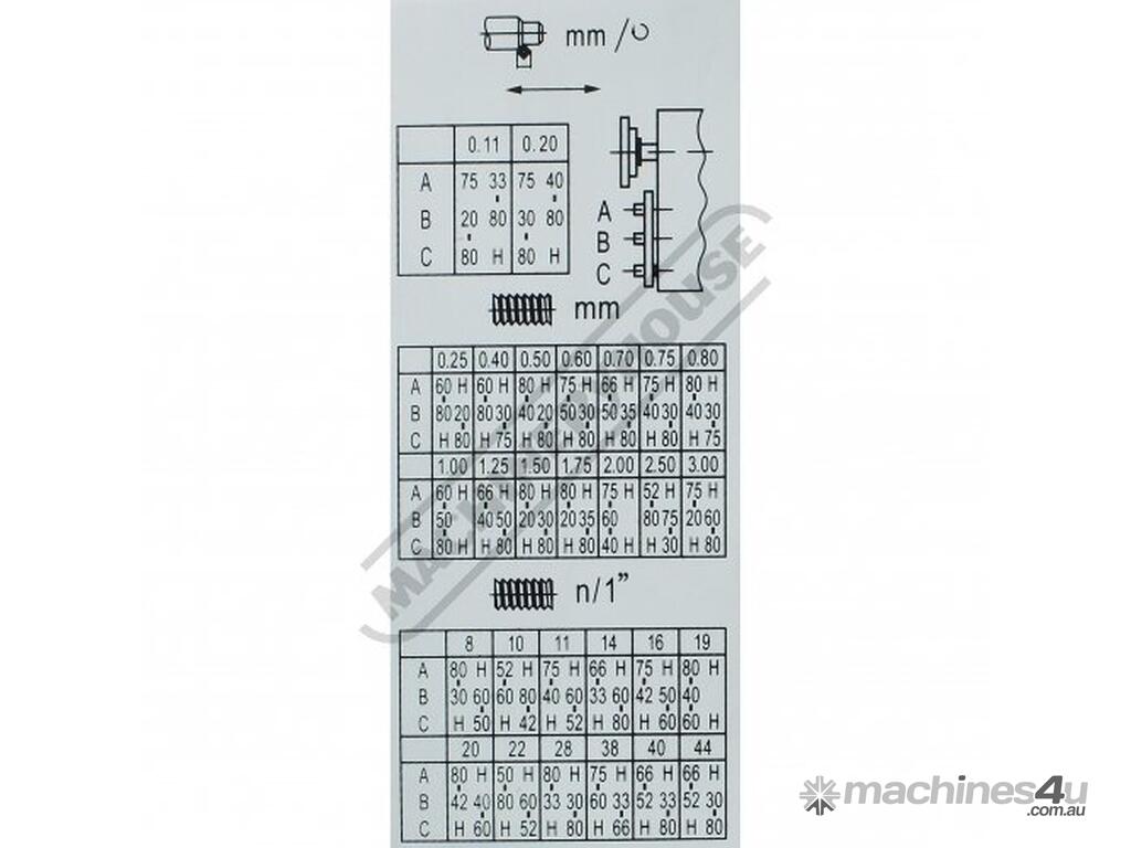 - Change gears for metric & imperial thread cutting