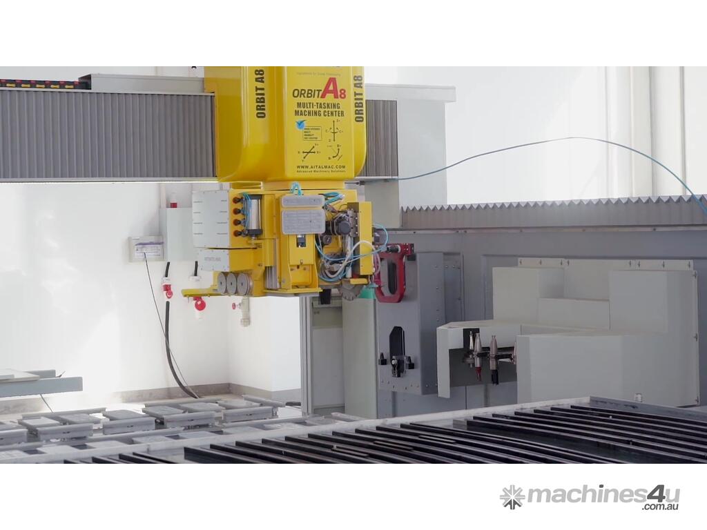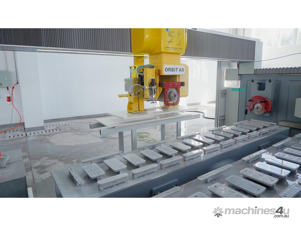 AitalMAC’s Orbit A8 is the future of kitchen countertops fabrication, it’s the ultimate evolution of the modern fabrication facility. Where in a current countertop manufacturing process multiple machines need to be deployed, which are a bridge saw, a CNC router, an edge polisher, and a waterjet,