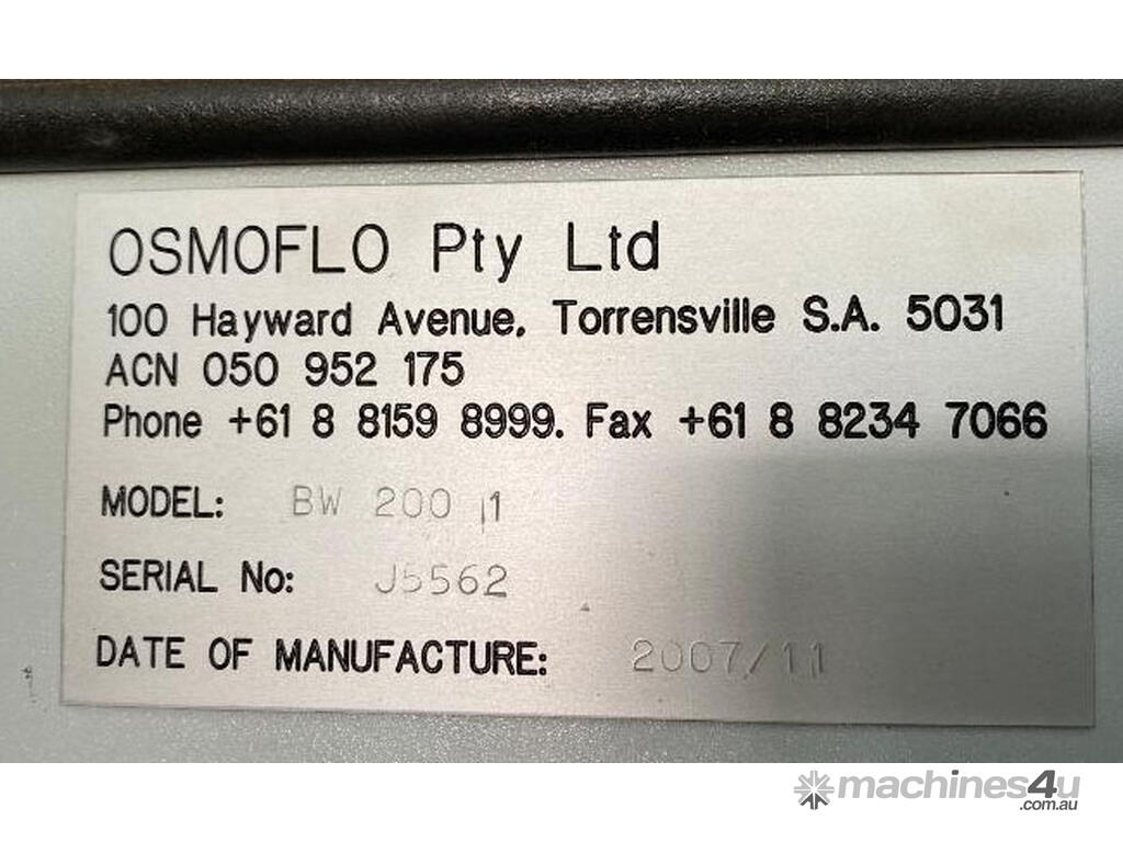 MODEL: BW 2001, SERIAL: J5562, DOM: 2007