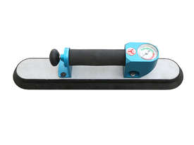The Oval Hand Vacuum - Cup Lifter is made of aluminium with an ergonomic handle including an integrated vacuum gauge and a pump. It is suitable for non-porous materials with smooth and curved surfaces such as glass, stone and steel pipes. The vacuum is created by pulling the hand pump repeatedly. The vacuum can be continuously monitored via the pressure gauge. Additional pumping can be done at any time.